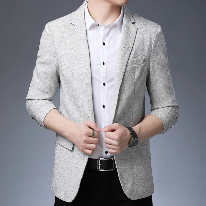 Пиджак Мужской приталенный на одной пуговице, Модный повседневный б...