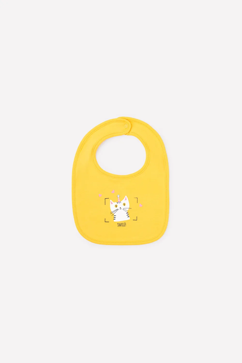 Описание: Жёлтый слюнявчик из мягкого трикотажа с принтом. Регулируется при помощи 2 кнопок.