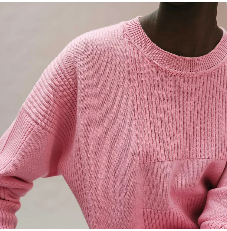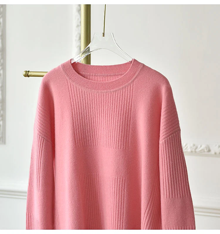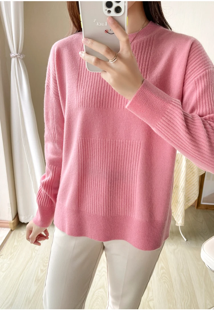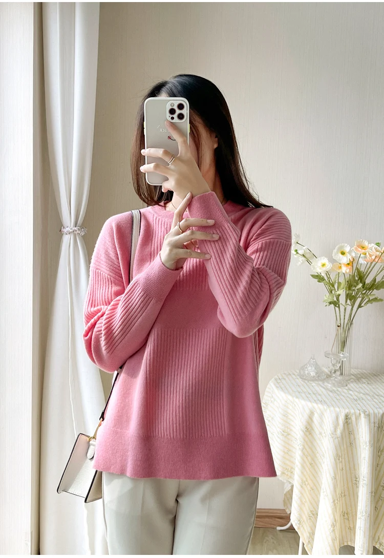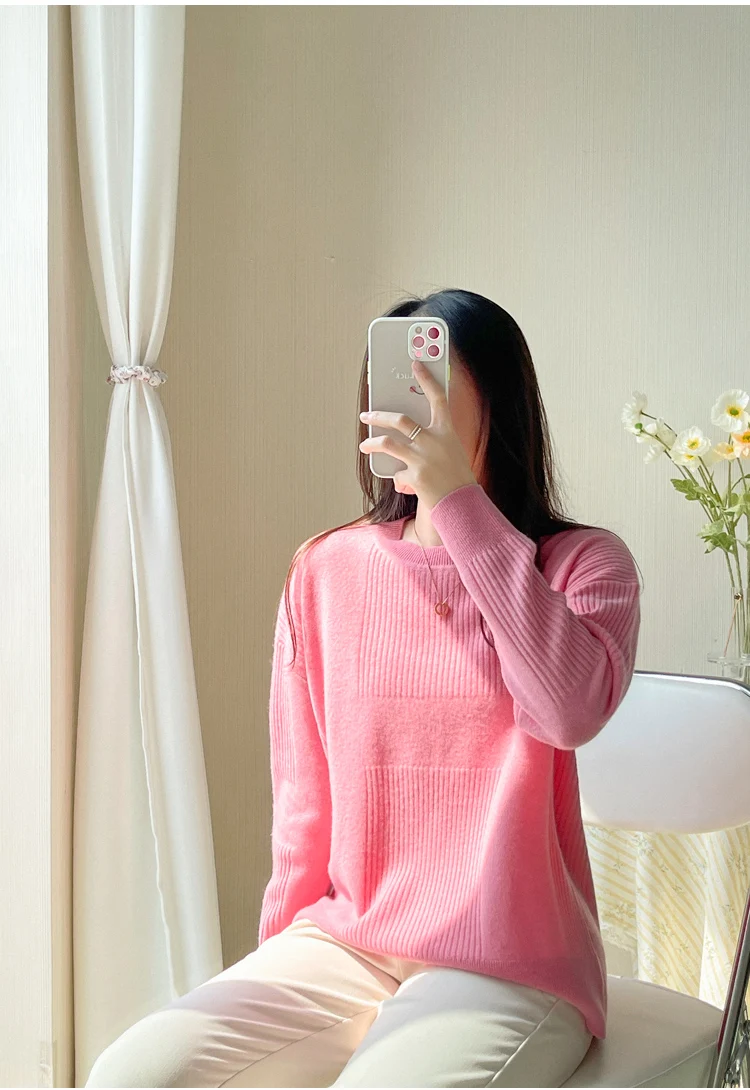 Модный розовый свитер с круглым вырезом для женщин, новинка осень-зима 2021, кашемировый свободный облегающий свитер с длинными рукавами