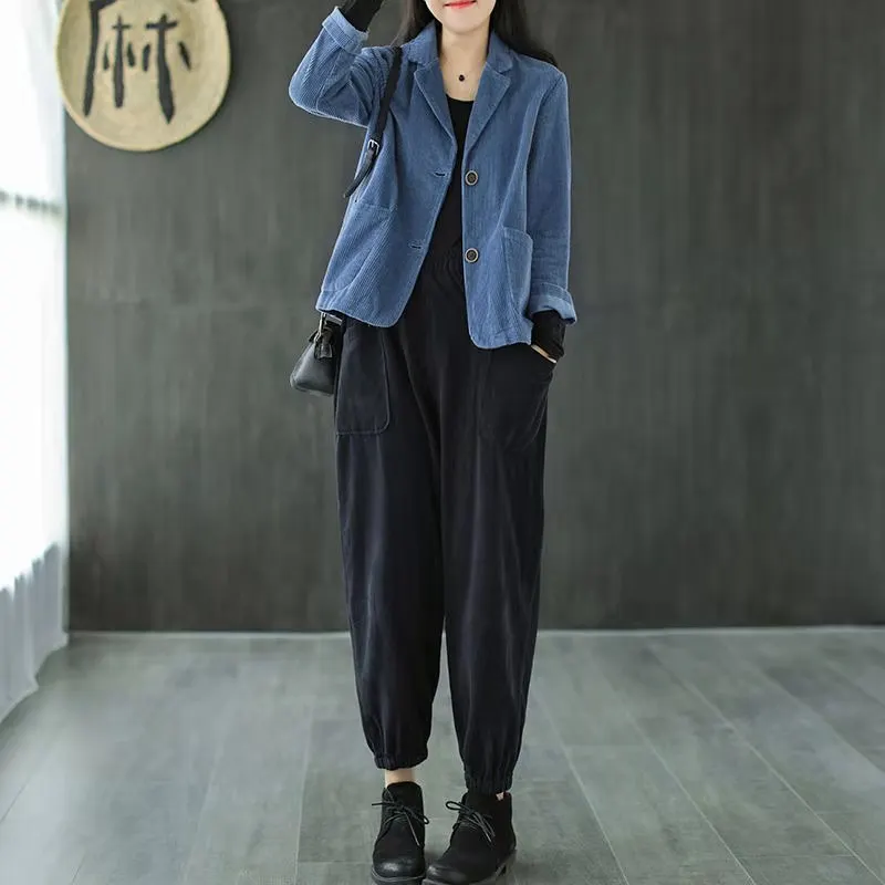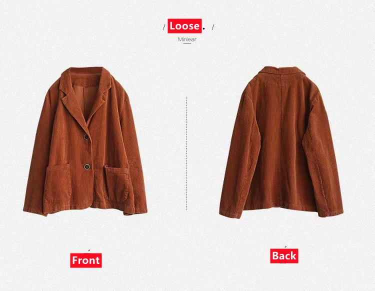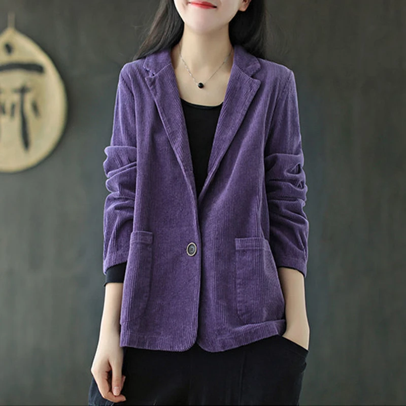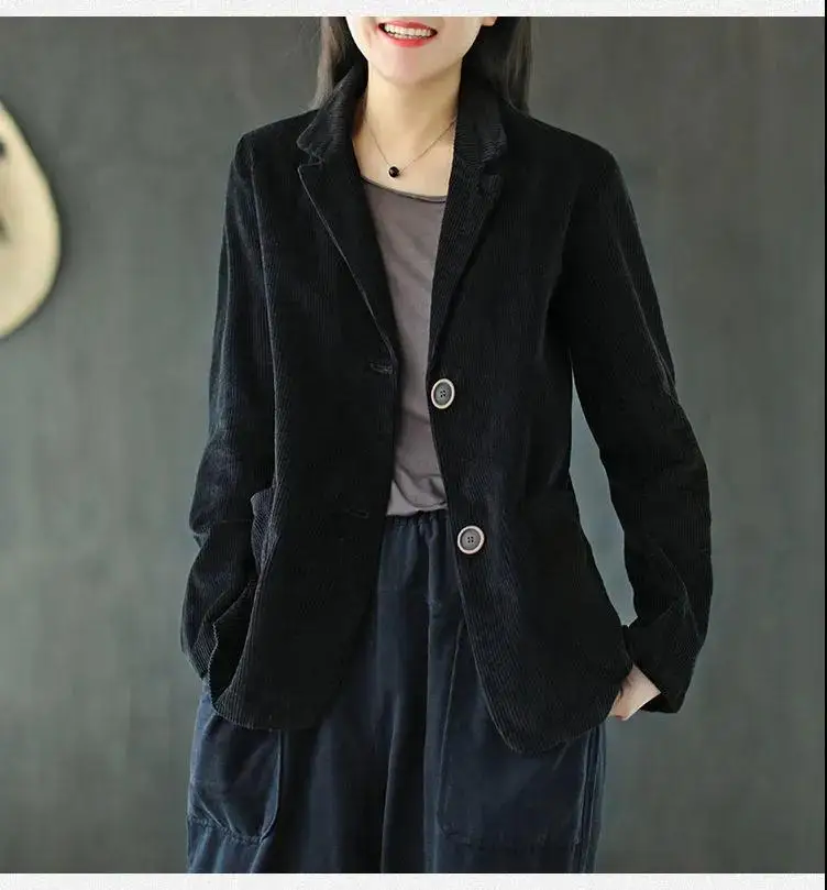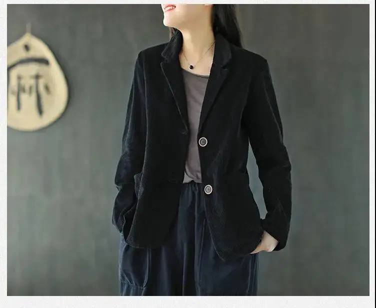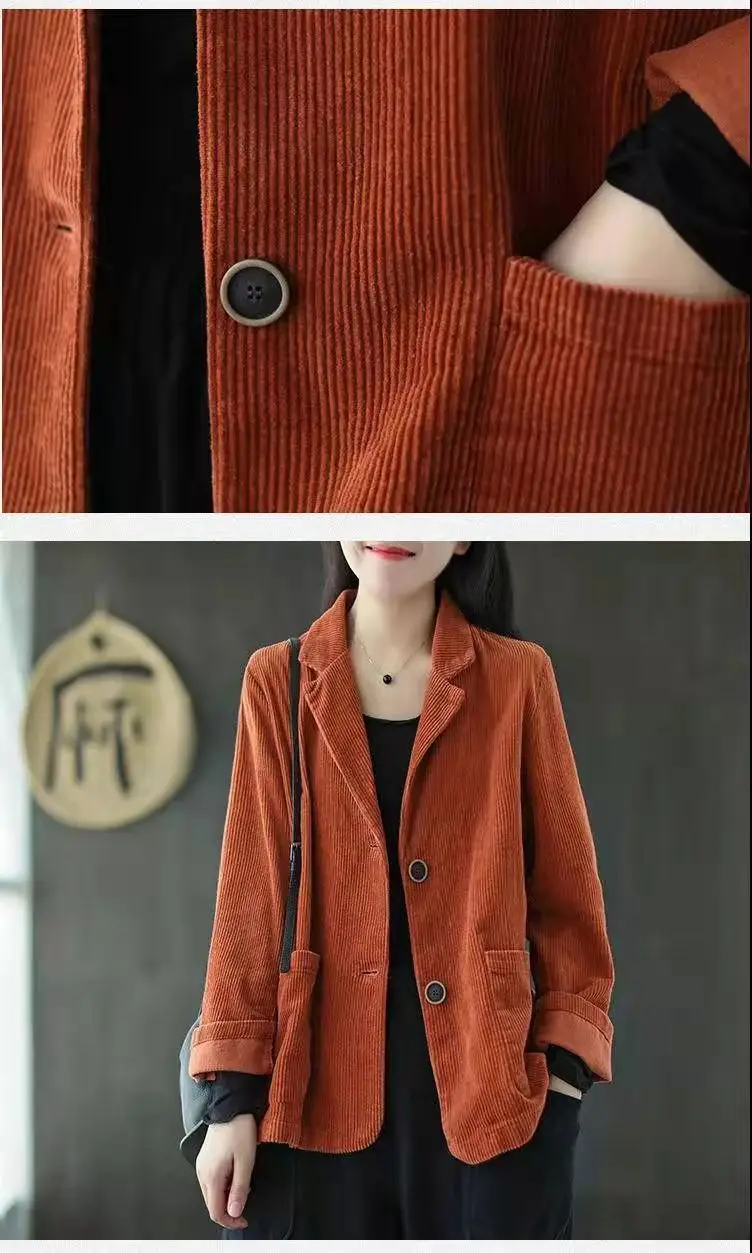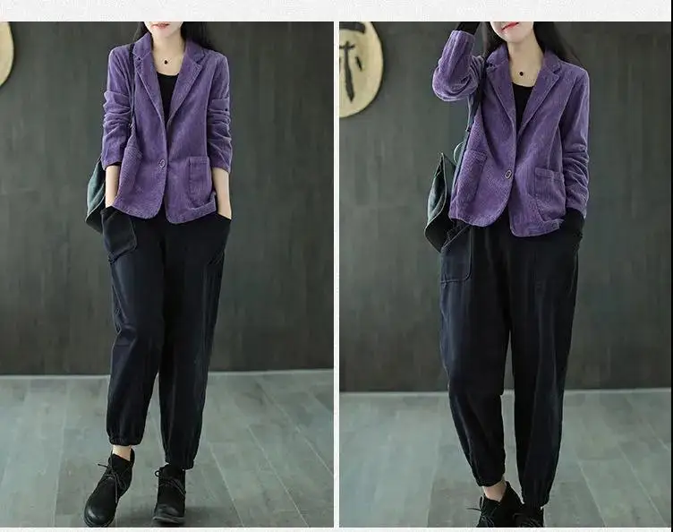 Женский вельветовый пиджак Ulzzang, однотонный винтажный Повседневн...