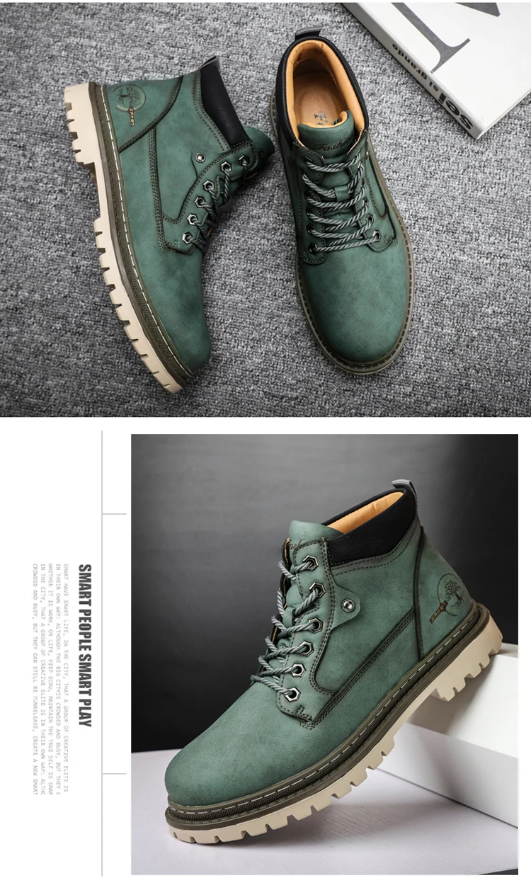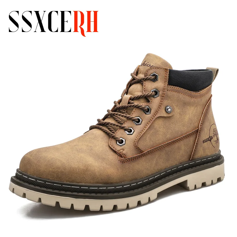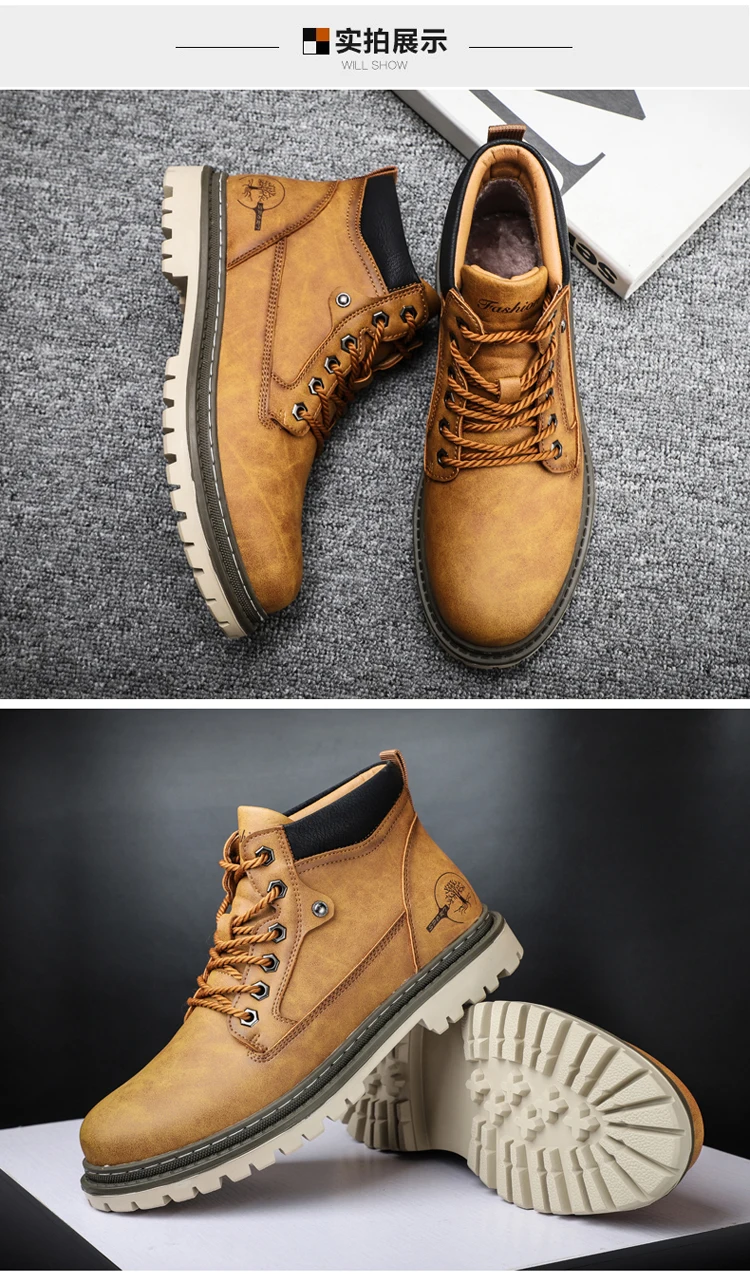 Зимние мужские ботинки из натуральной кожи, мужские теплые ботинки на меху для снега, кроссовки, Роскошные уличные кожаные Брендовые мужские мотоциклетные ботинки