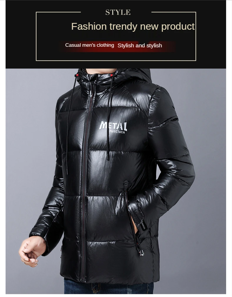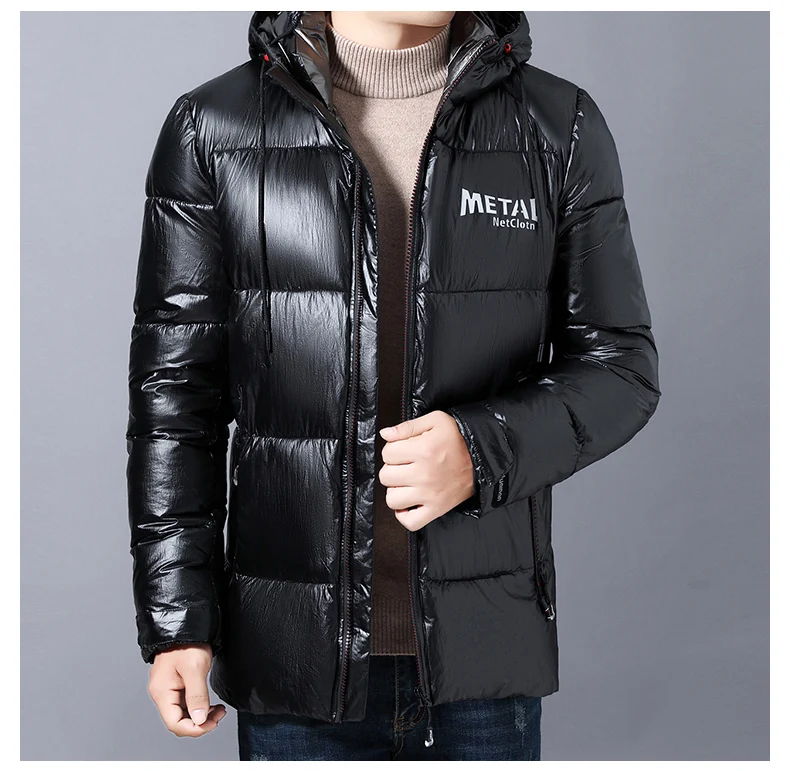 Толстая теплая Новая брендовая Повседневная модная парка, блестящая куртка-пузырь с капюшоном, Мужская ветровка, глянцевое пуховое пальто, зимняя мужская одежда