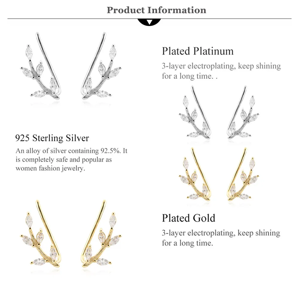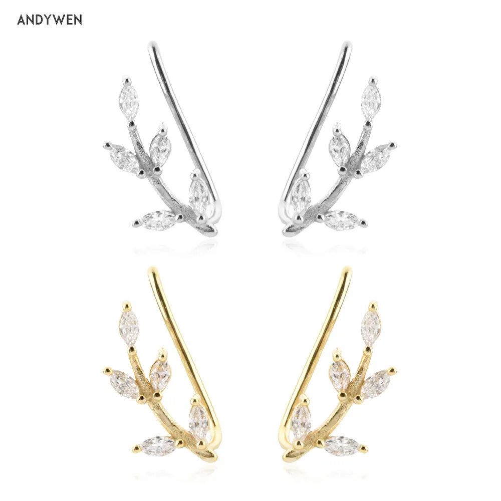 Серьги-гвоздики ANDYWEN из стерлингового серебра 925 пробы с листья...
