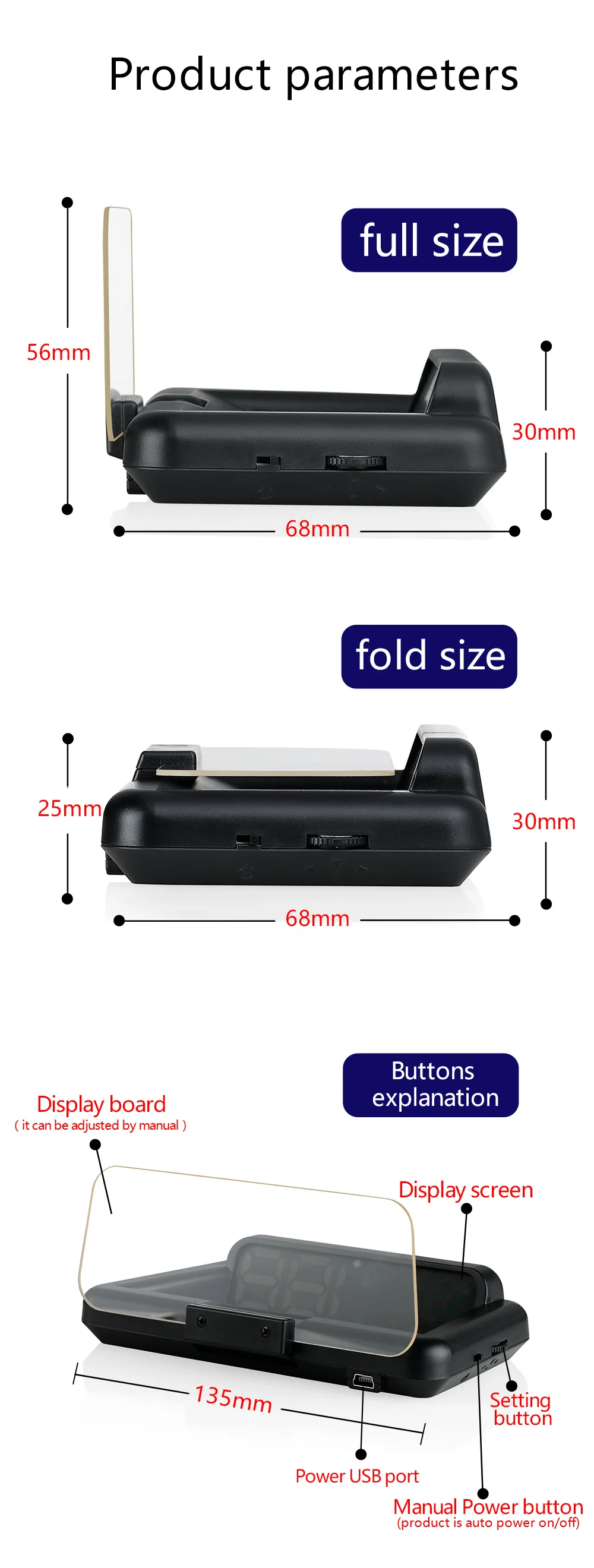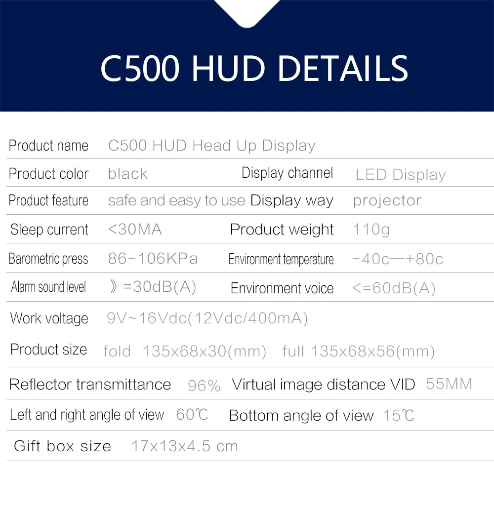 Размер HUD: 12,5*7,5*1,5 (см)