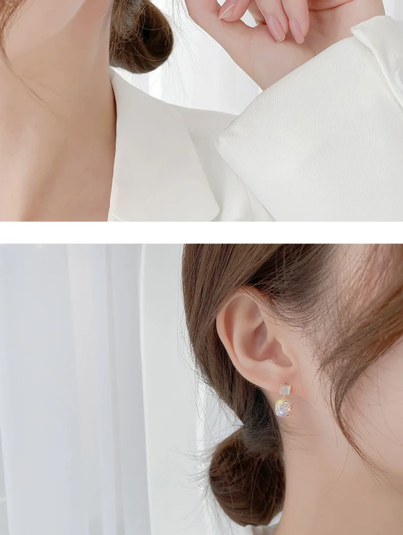 Серьги-гвоздики женские медные, с кошачьим глазом