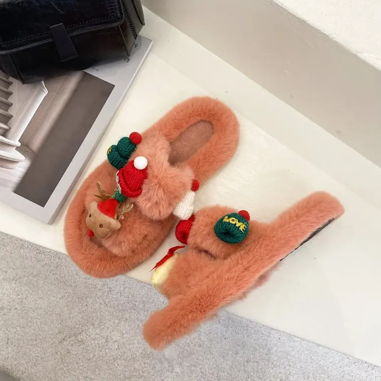 Осенне-зимние 42-дневные рождественские меховые тапочки, женские до...