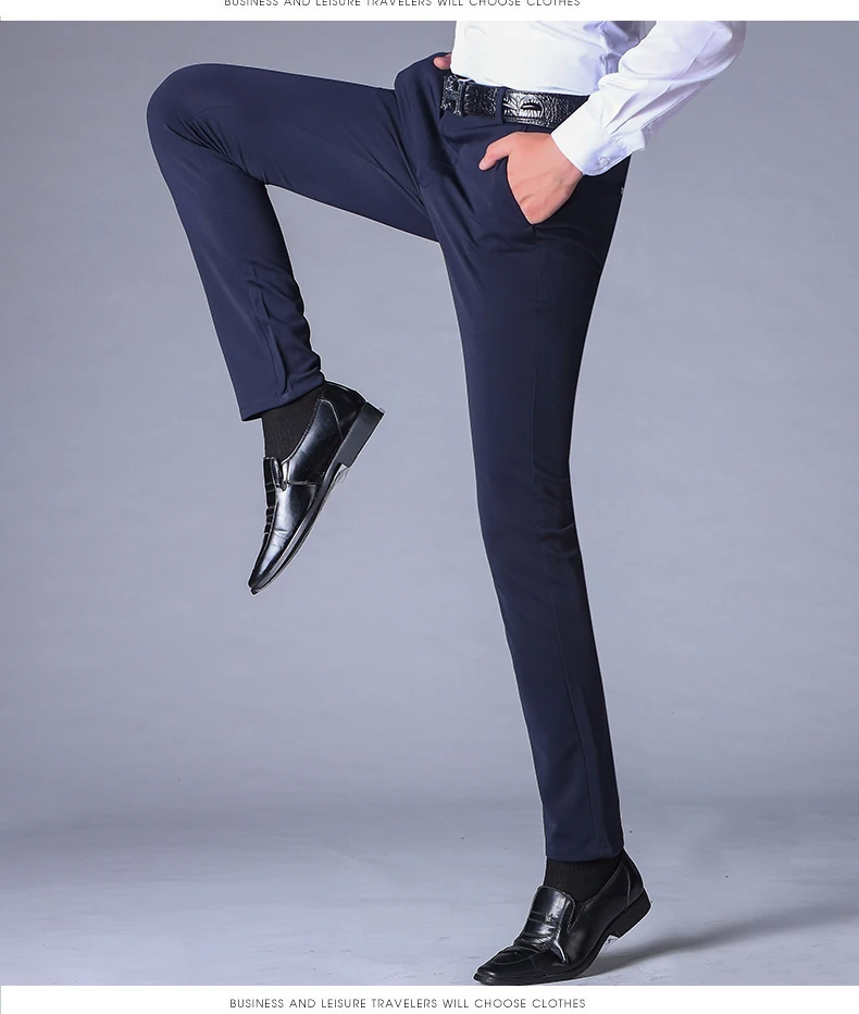 Без глажки, без морщин, высокое качество, новый бренд, повседневные, тянущиеся, Длинные мужские штаны, деловые прямые брюки, модная мужская одежда