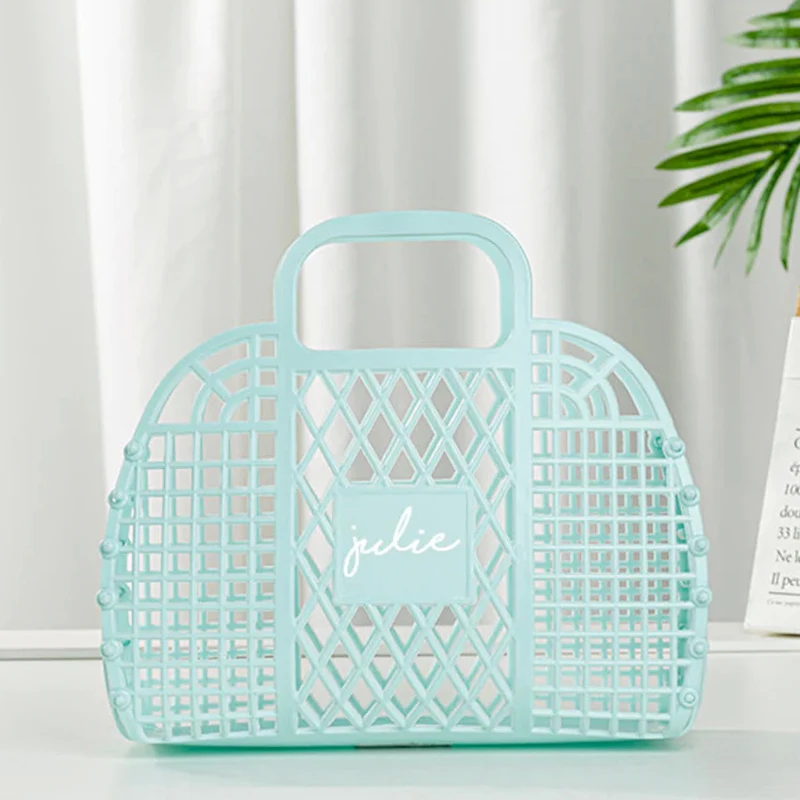 Желейная Сумка-ретро модная корзина, пляжная сумка. Это винтажная Желейная корзина мягких нейтральных цветов. Он имеет широкий спектр применений, таких как сумки для покупок, подарочные корзины, подарки для девочек-цветочниц или повседневные кошельки для маленьких девочек; Он также подходит для свадеб подружек невесты, дней рождения и других случаев. Многоразовый, перерабатываемый и моющийся.