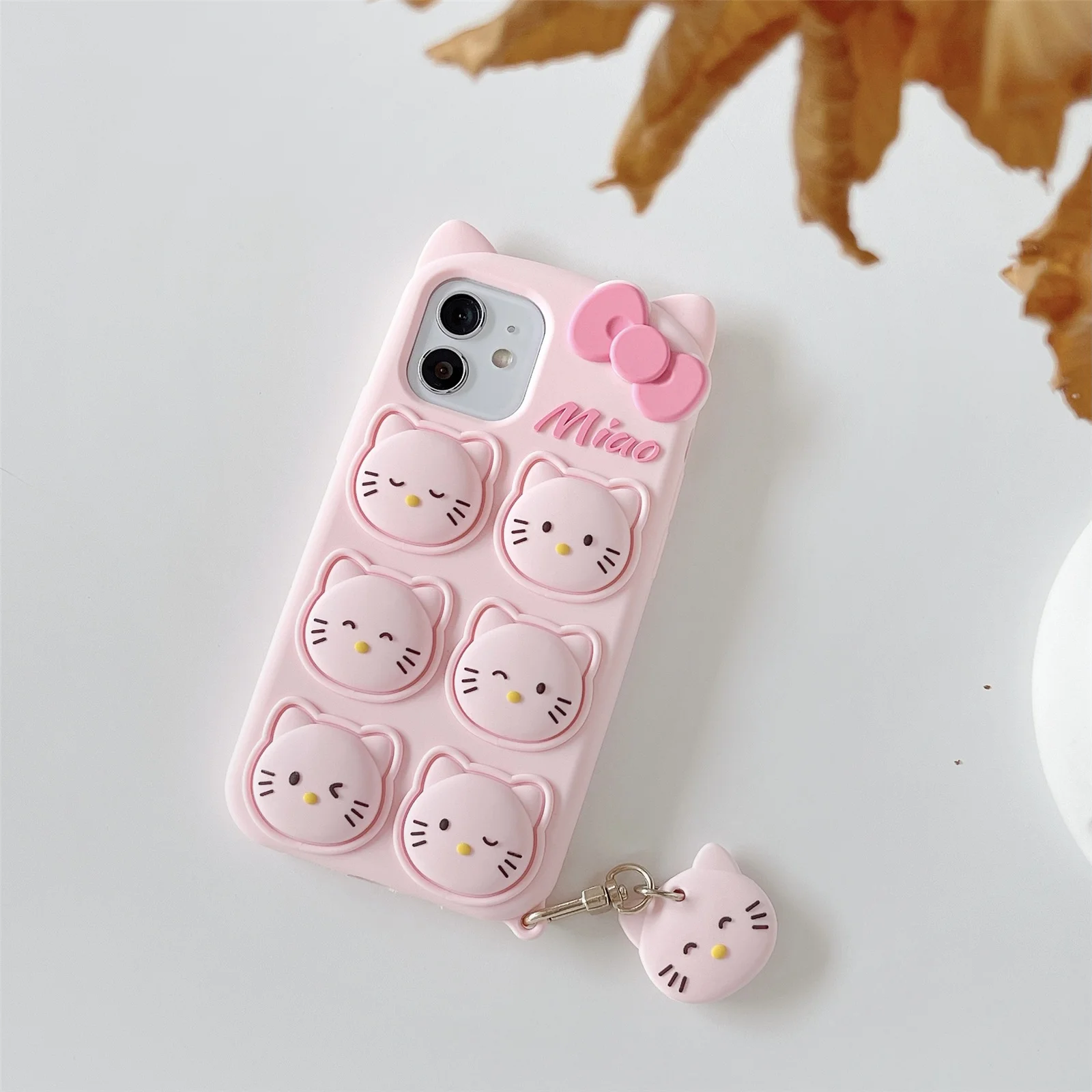 Милый 3D чехол с бантом и котом для снятия стресса, мягкий силиконо...