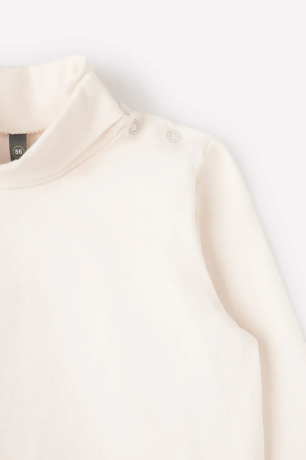 Описание: Однотонная светлая водолазка с длинными рукавами из трикотажа супрем с эластаном. Эластан в составе позволяет изделию быть более эластичным и дольше сохранять опрятный внешний вид. Воротник с отворотом с застёжкой на кнопки-ободок.