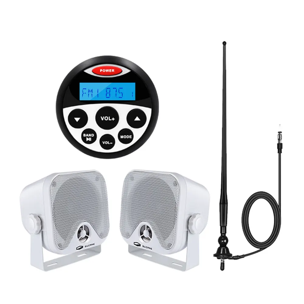 Морская стереосистема Bluetooth, радио плеер + 1 пара 4-дюймовых водонепроницаемых динамиков для лодок, квадроциклов, спа, гольф-карт + FM AM антенна