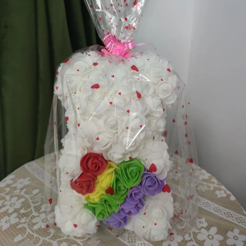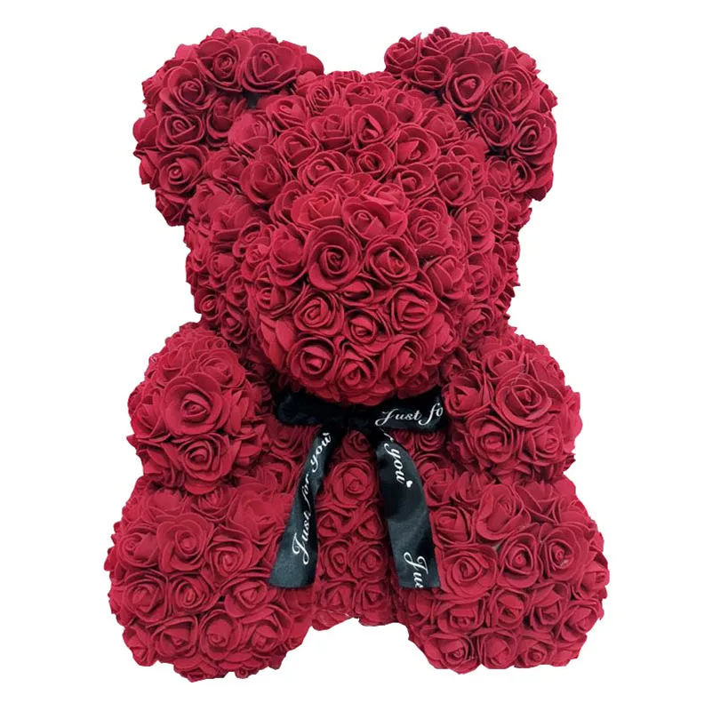 Медвежонок из искусственных роз ко дню св. Валентина (25 см)