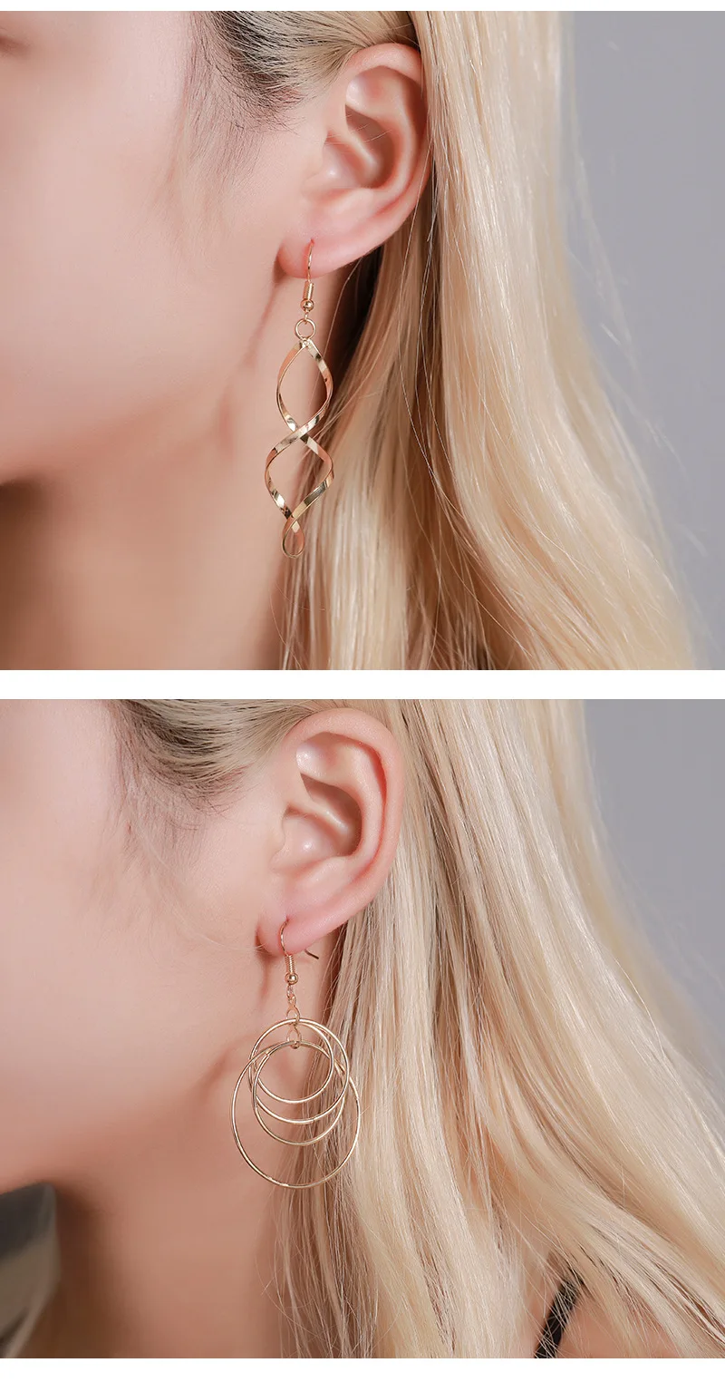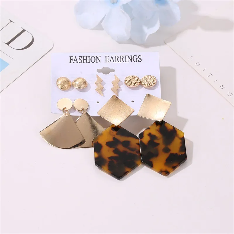 Набор металлических серег с бахромой, простые серьги с креплением на карту и леопардовым принтом, геометрические серьги с отверстиями и листьями