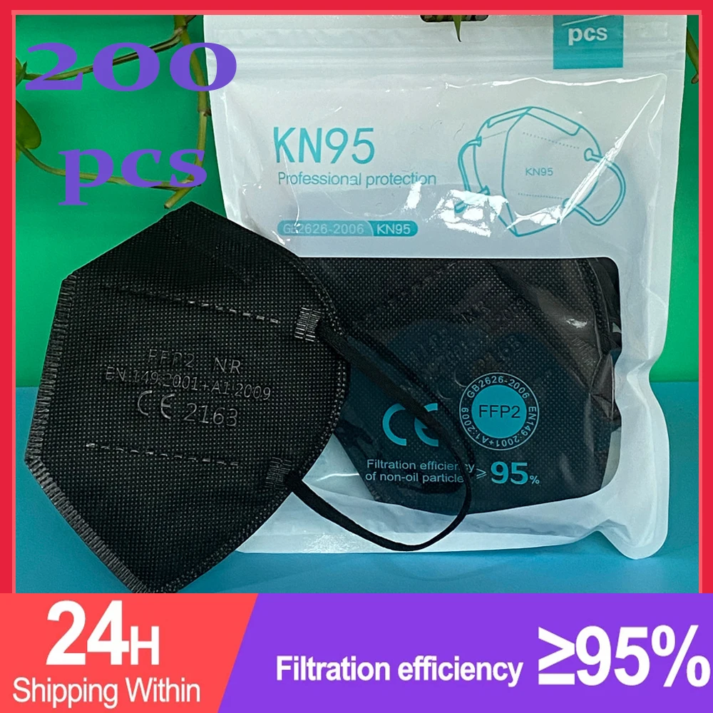 Маска ffp2 для взрослых, 5 слоев, 200 шт., сертифицированная