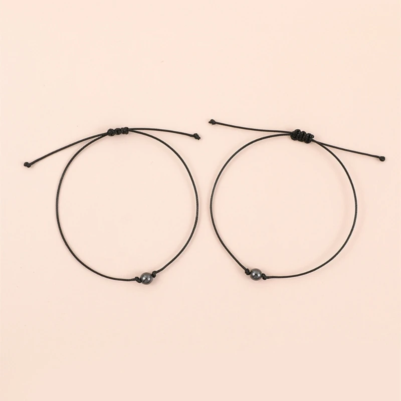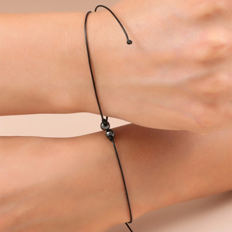 Браслет с Бусиной из гематита, черная нить, браслет для пары, магни...