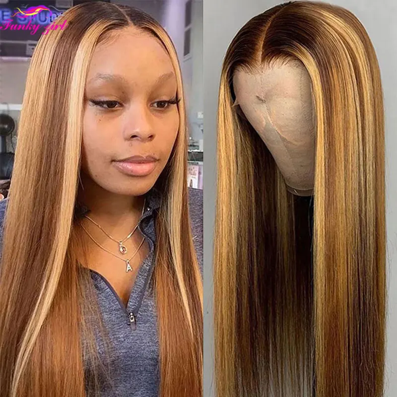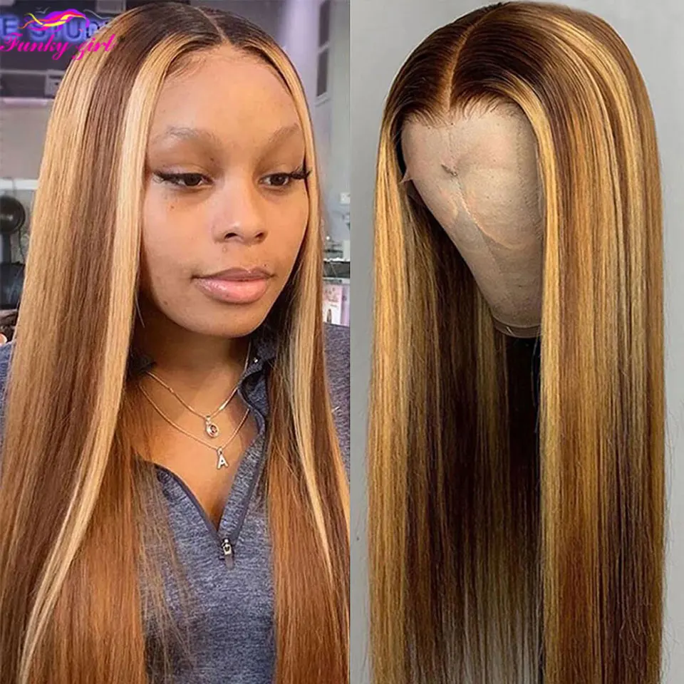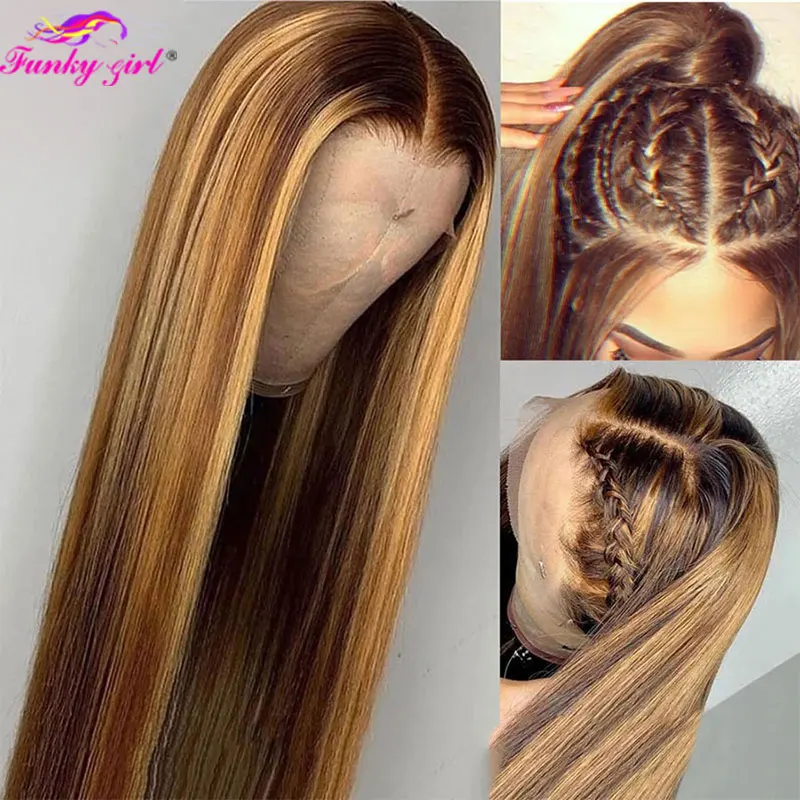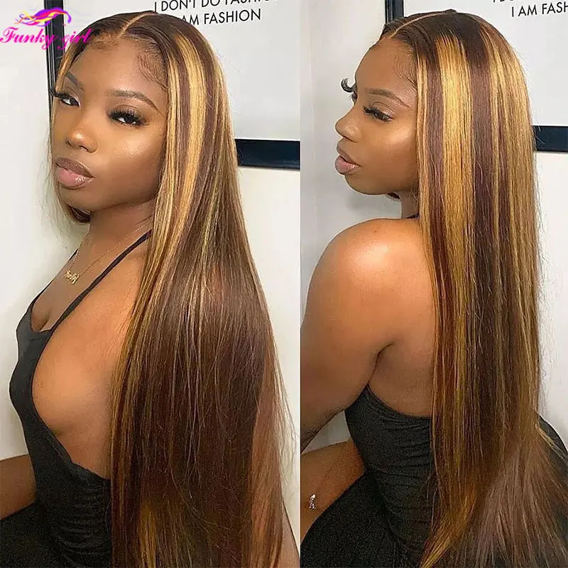 Парик хайлайтер цветные человеческие волосы парик прямые кружевные передние парики для женщин Бразильский 180% плотный парик на сетке Remy прозрачный