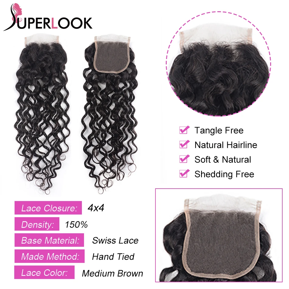 Прозрачная Кружевная застежка 4x4 в форме водной волны, прямая застежка 4x4, 150%, Destiny 8-22 дюйма, кружевная застежка естественного цвета