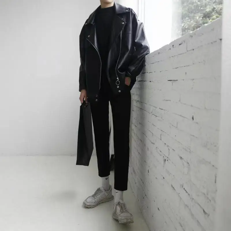 Мотоциклетная кожаная куртка для мужчин и женщин, Корейская свободн...