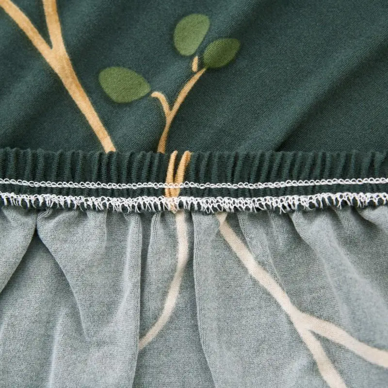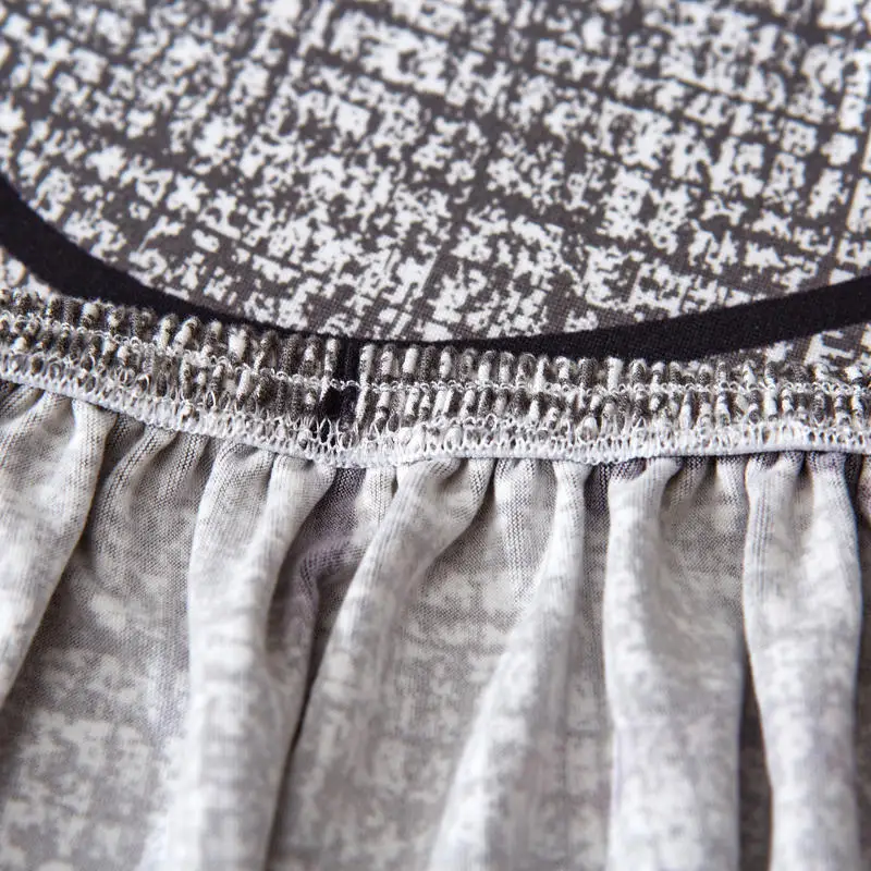 Основной материал-молочный шелк, состоит из 95% полиэстера и 5% спандекса. Используется технология реактивной печати и окрашивания, которая не легко катится, не легко выцветает, моется, легко разбирается и обладает высокой эластичностью.Низ имеет эластичную ленту для фиксации и не легко перемещается.