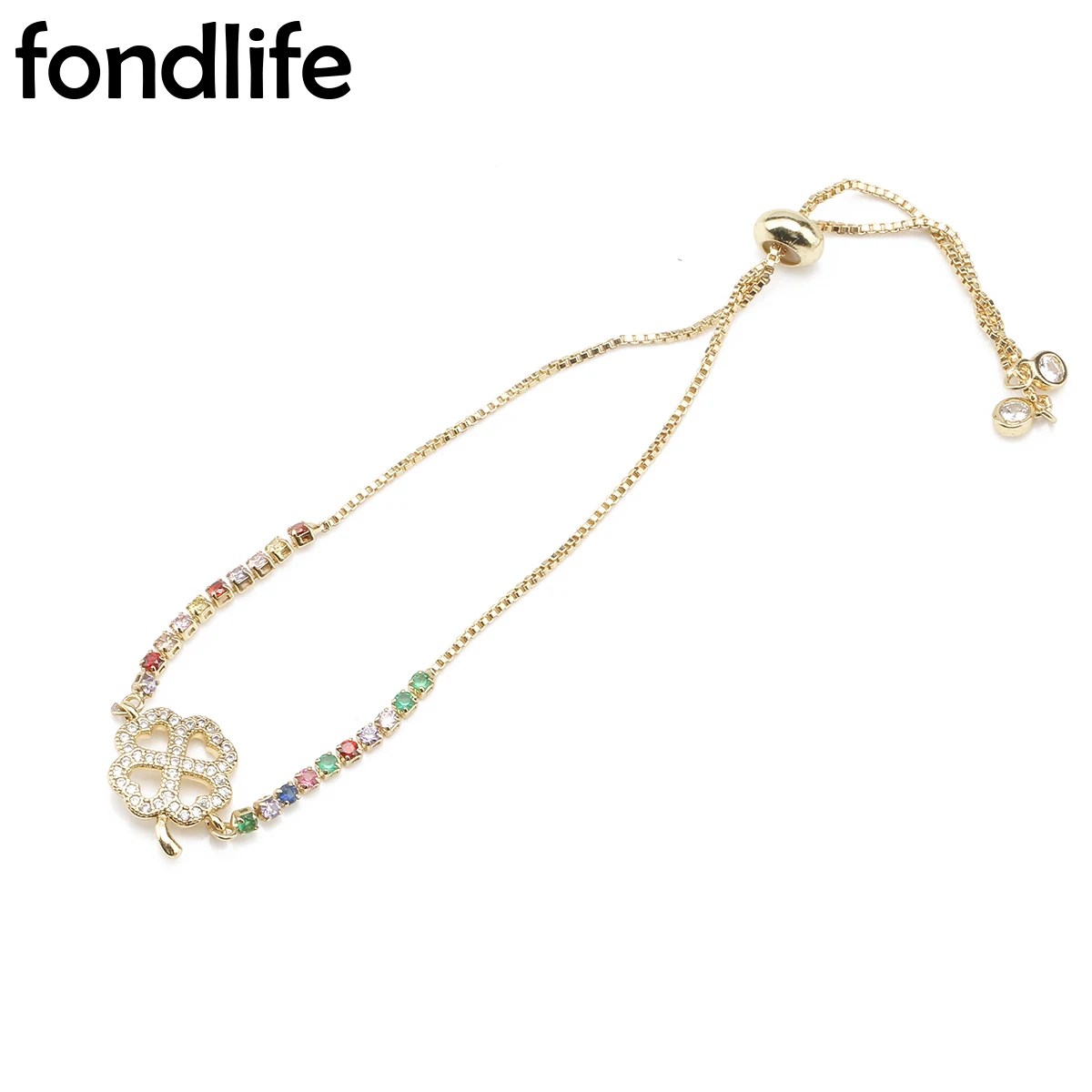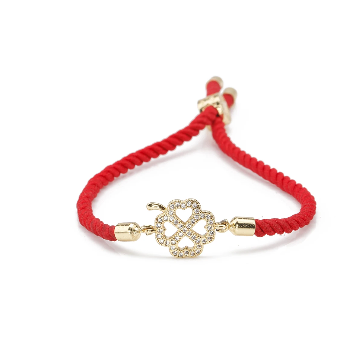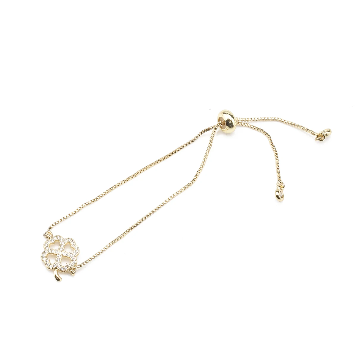 Цепочка с подвеской в виде четырехлистного клевера, регулируемый браслет из латуни с покрытием из кристалла и фианита, ювелирное украшение для женщин