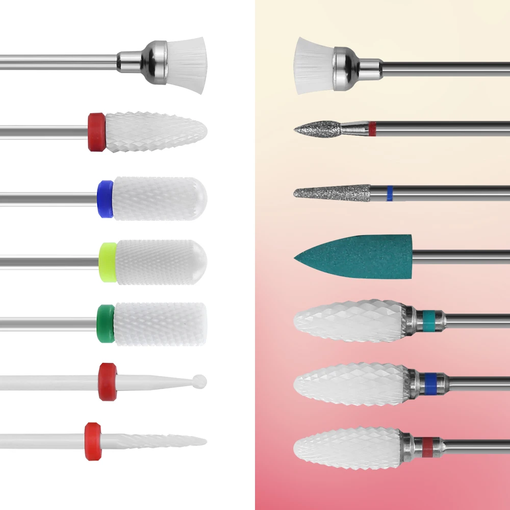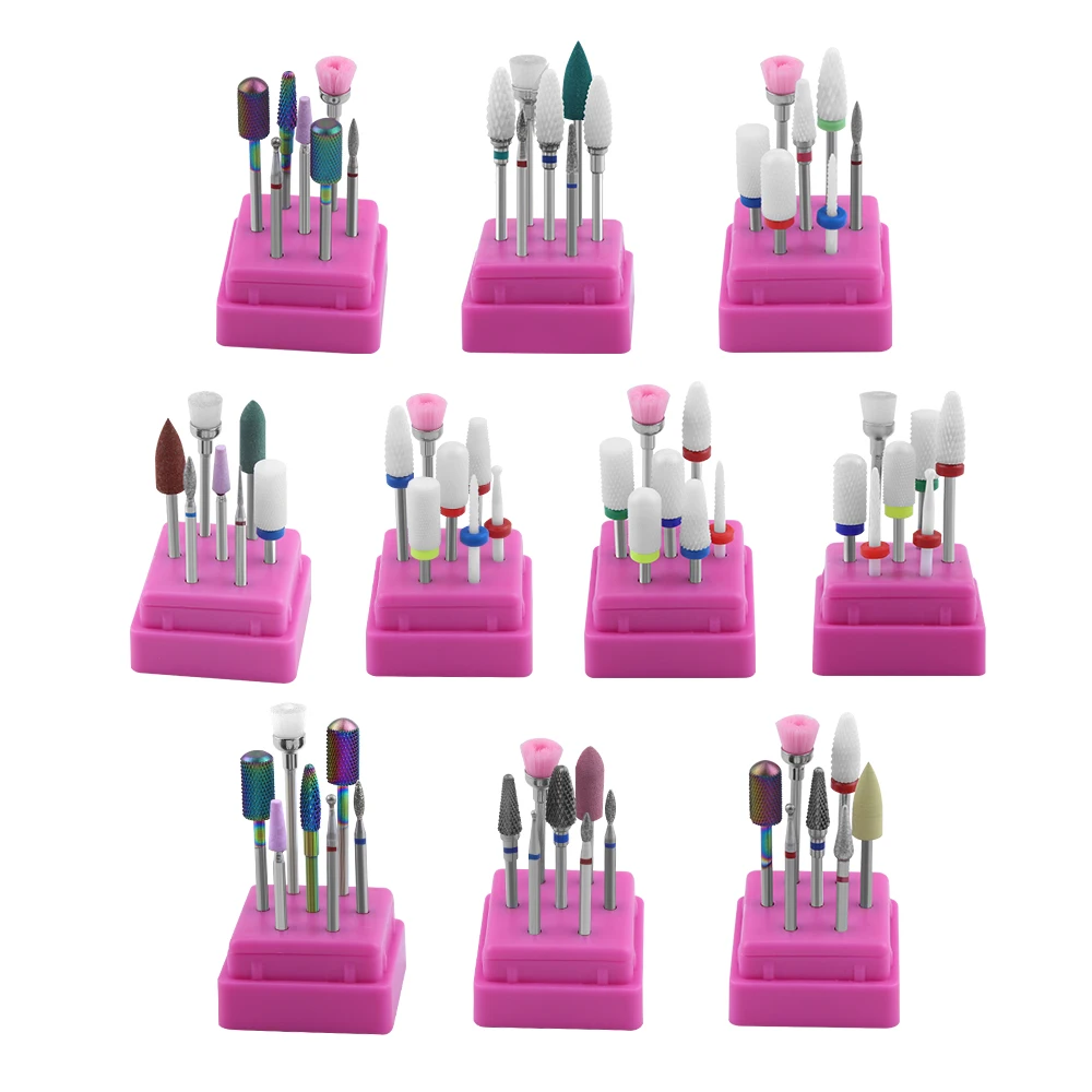 Набор керамических Алмазных фрез для маникюра, набор из 7 насадок для маникюра, аксессуары для ногтей, пилки для ногтей, инструменты для ногтей