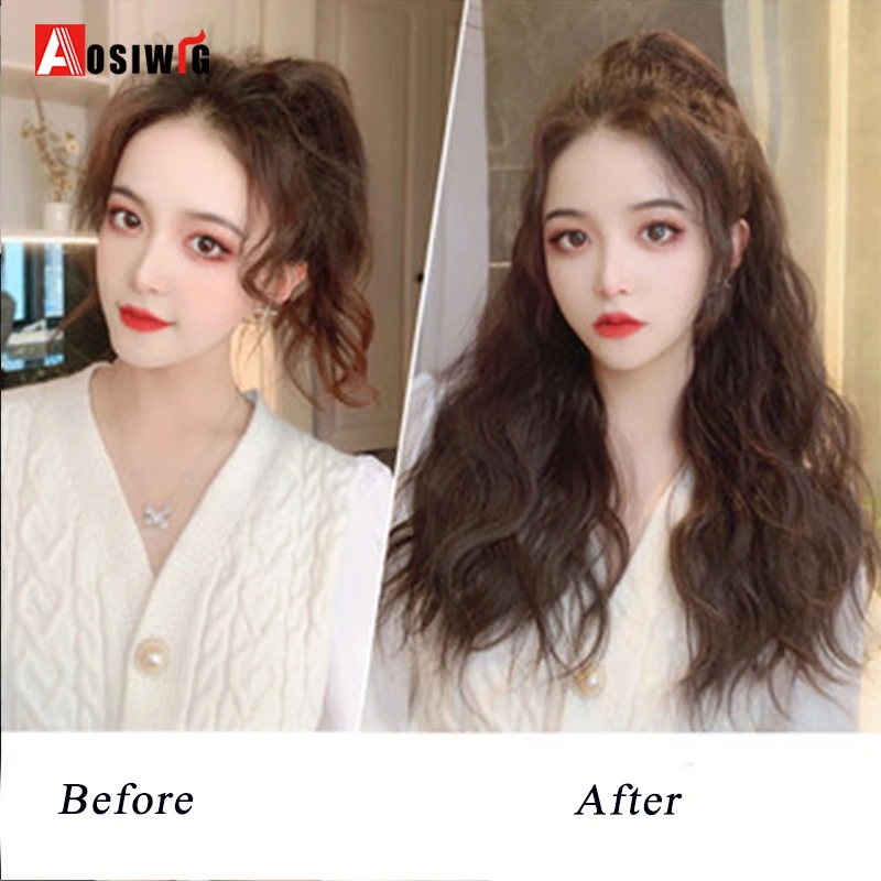 Шиньон для наращивания волос AOSI, Искусственные черные, коричневые...