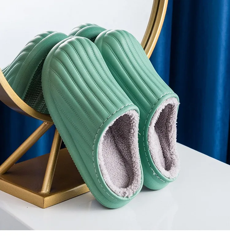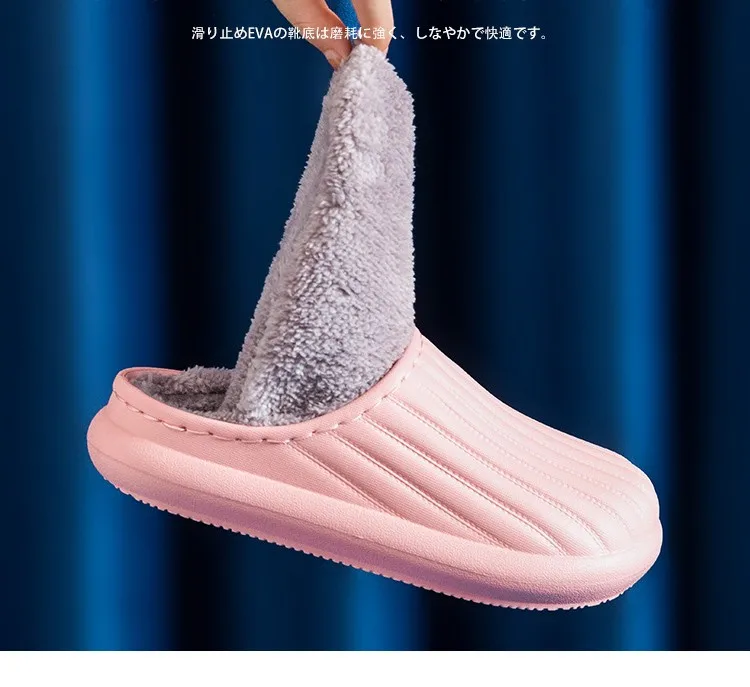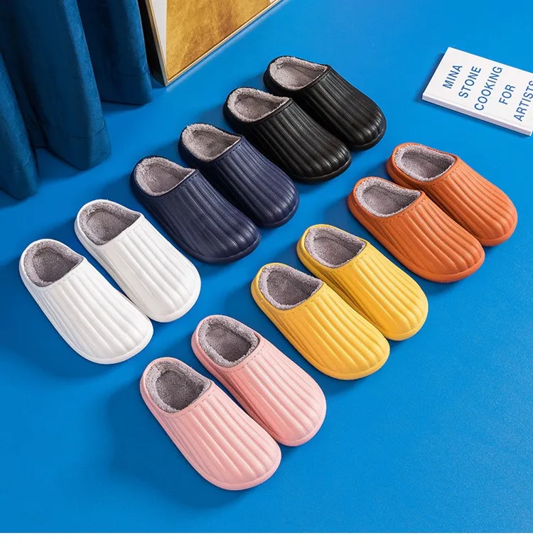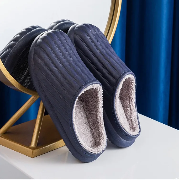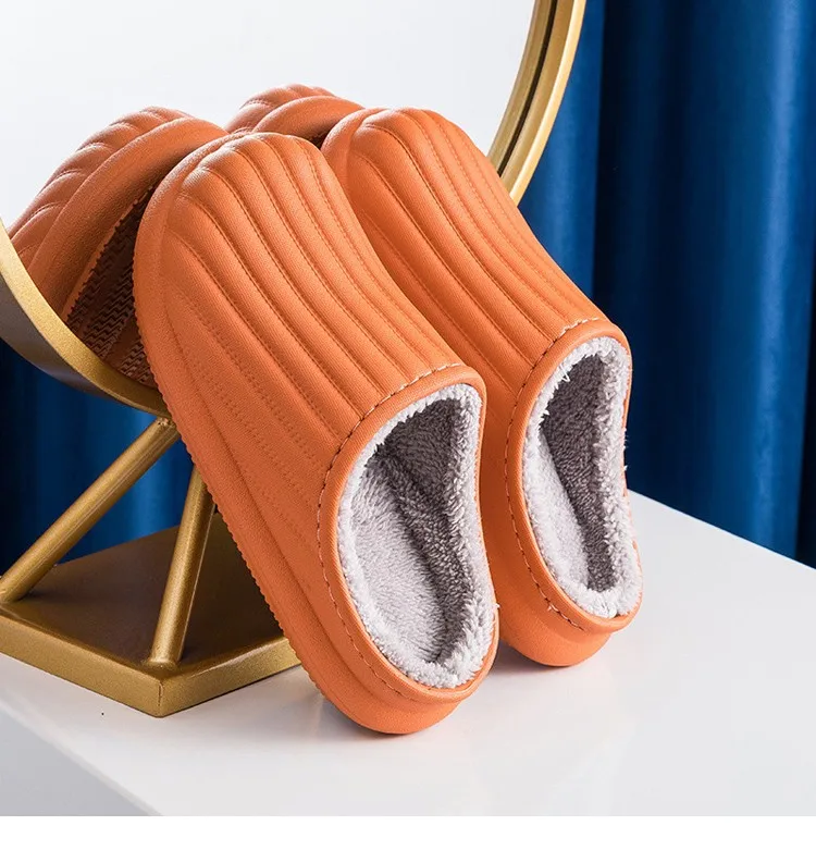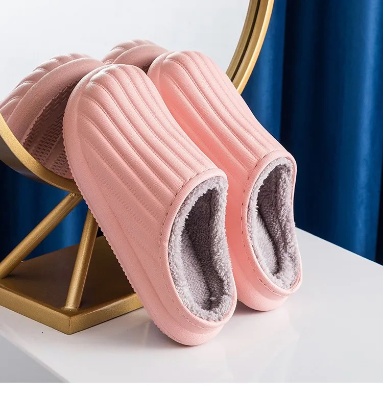 Зимние теплые тапочки для женщин и мужчин, водонепроницаемые полосатые Нескользящие шлепанцы на толстой подошве, искусственный мех