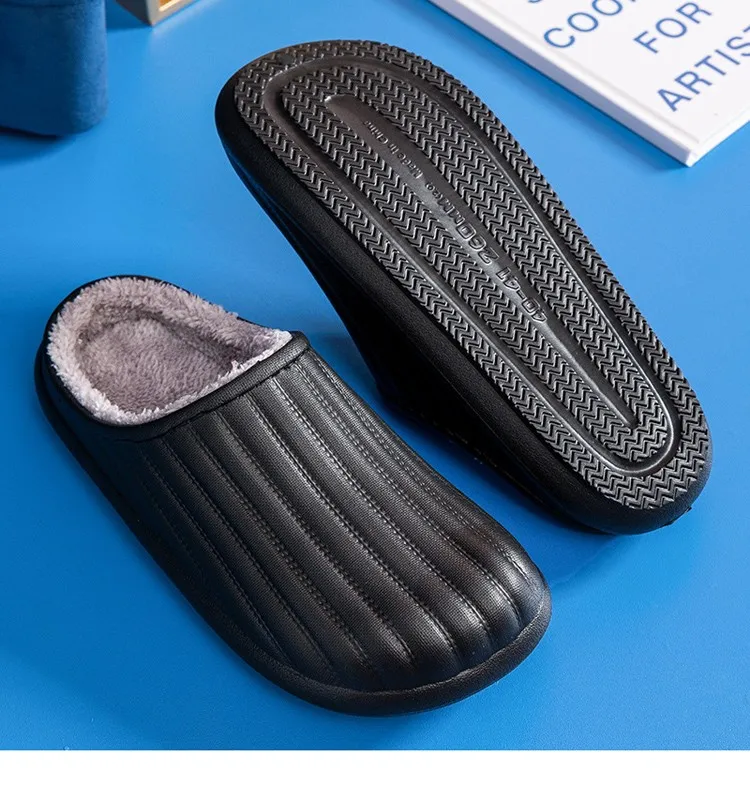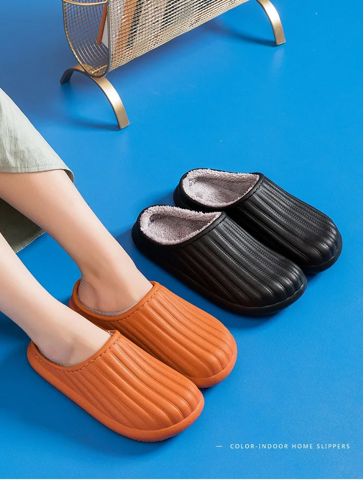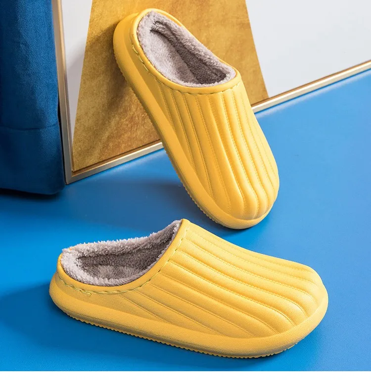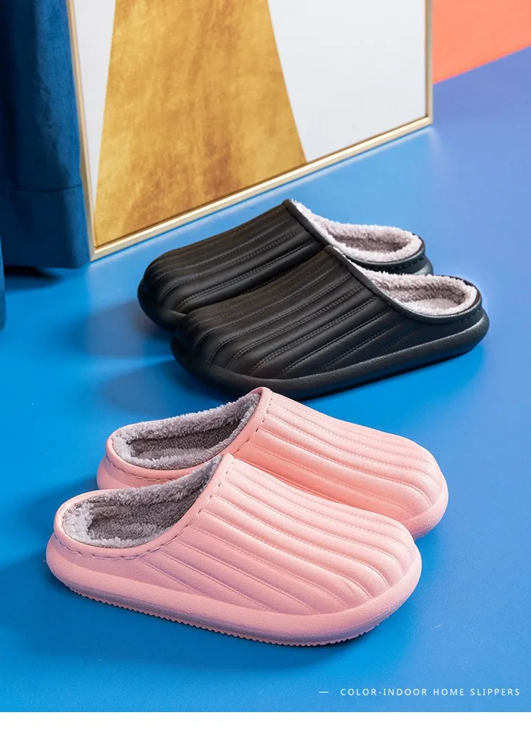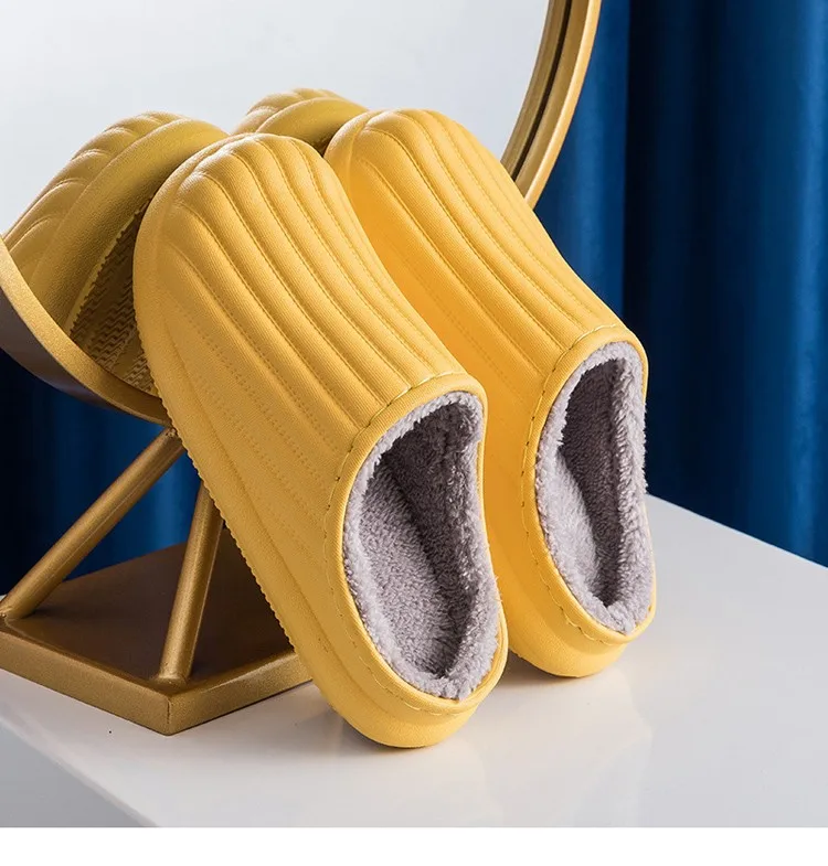 Зимние теплые тапочки для женщин и мужчин, водонепроницаемые полосатые Нескользящие шлепанцы на толстой подошве, искусственный мех