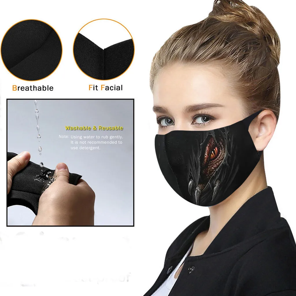 Маска Защитная с принтом волка для взрослых, многоразовая дышащая черная маска для женщин и мужчин, маски для лица на Хэллоуин, 1 шт.