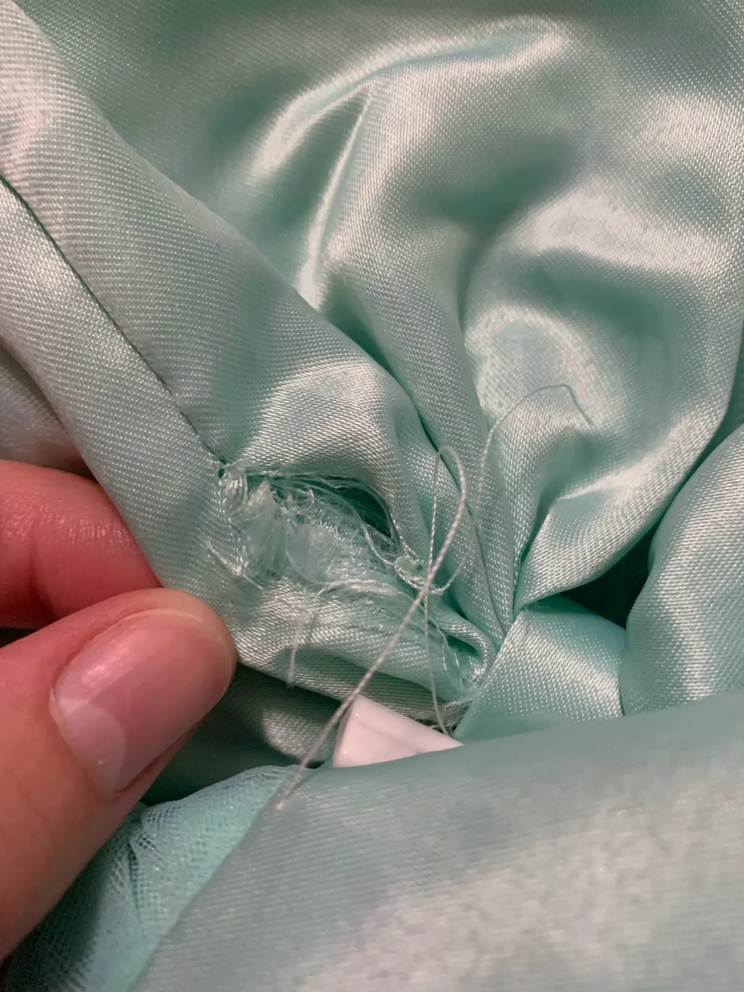 Платье отвратительно сшито, неровно, нитки торчат. Грязное пришло с дырой на юбке!! Тряпка какая-то!!! Открыла спор, продавец предлагал 2 доллара и скидку на будущие заказы... Только вмешательства Алиэкспресс одобрило возврат 700р!!!