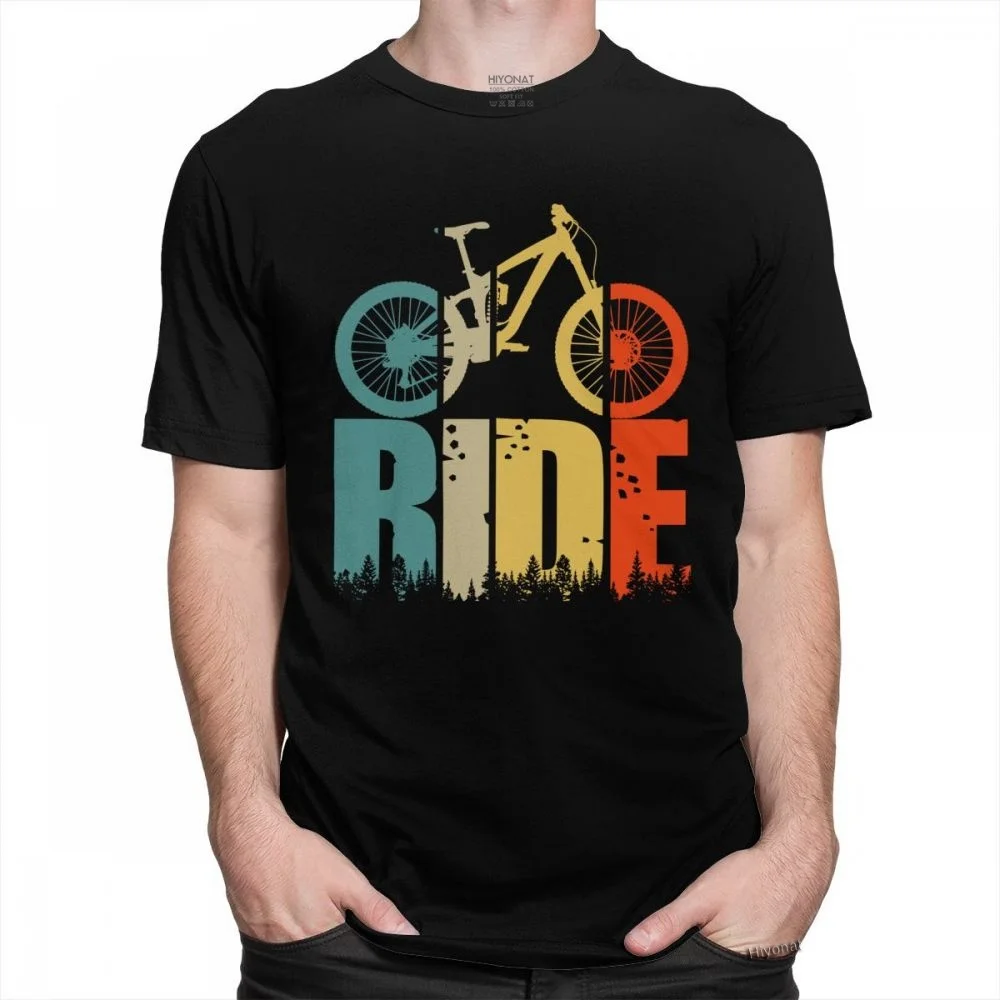 Мужская футболка из принт с коротким рукавом хлопка, в стиле ретро, с принтом ездить на горном велосипеде