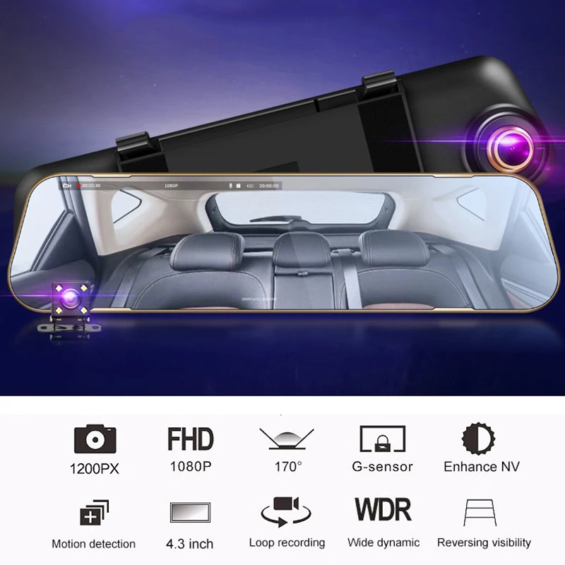 Автомобильный видеорегистратор-зеркало заднего вида, 4,3 дюйма, 1080P