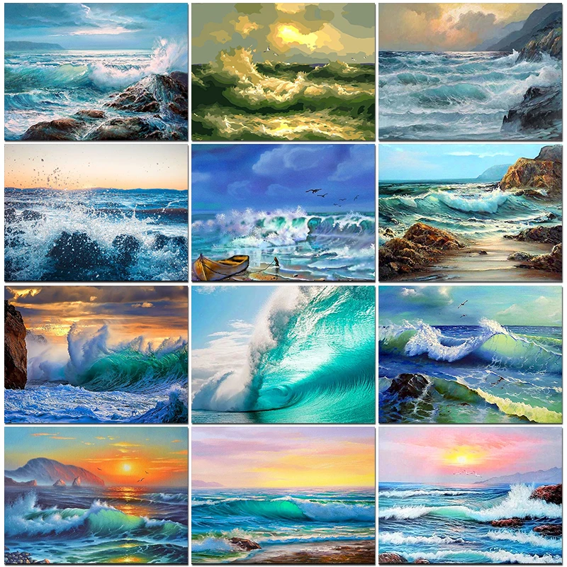 GATYZTORY Sea Landscape DIY масляная краска по номерам набор акрило...