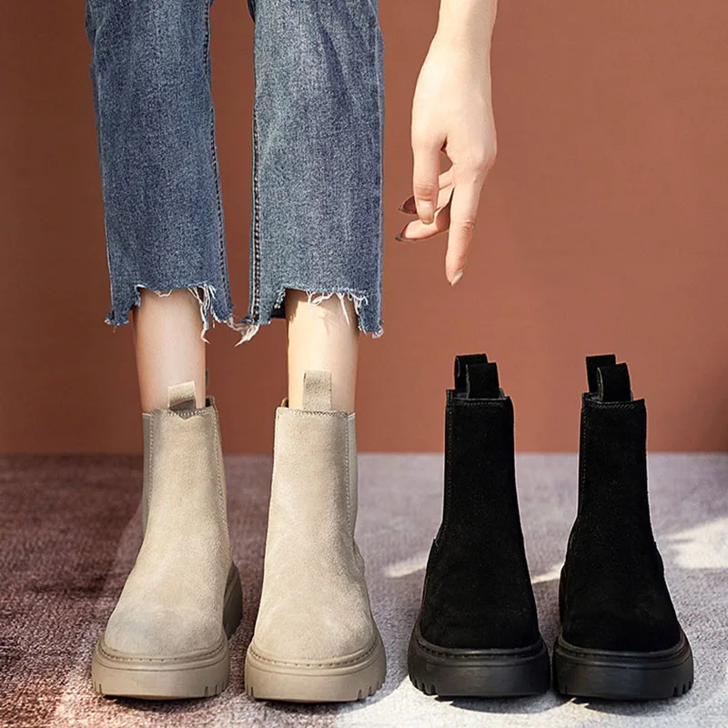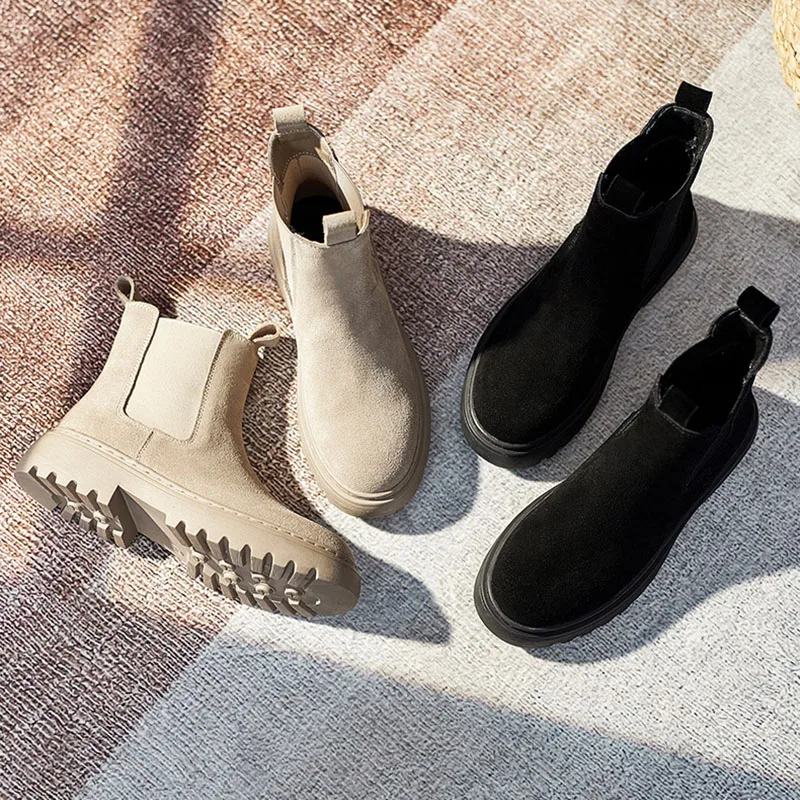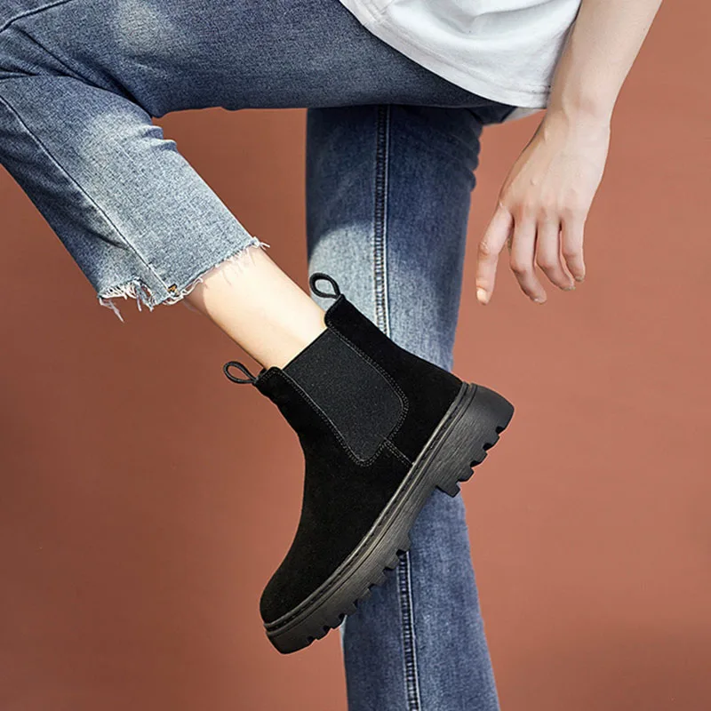 Ботинки-челси женские замшевые осенние на платформе, без застежек