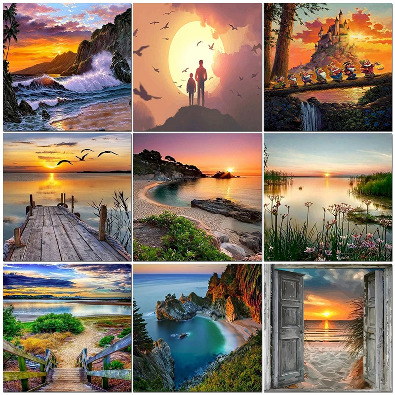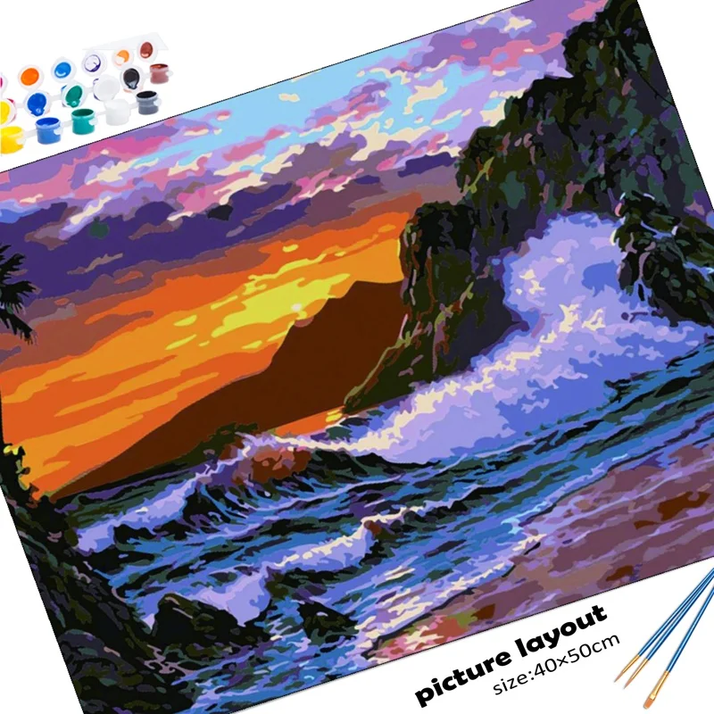 GATYZTORY Sea Landscape DIY масляная краска по номерам набор акрило...