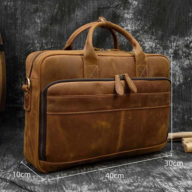 Мужской кожаный портфель Crazy Horse, 15 дюймов, Laotop, натуральна...