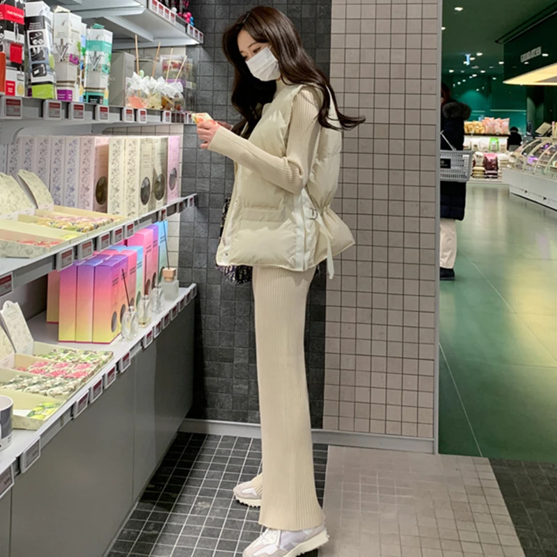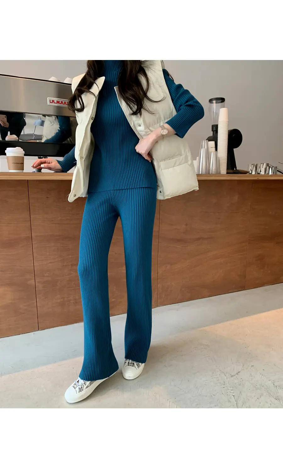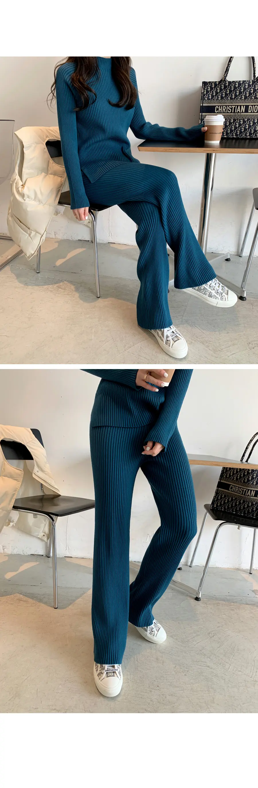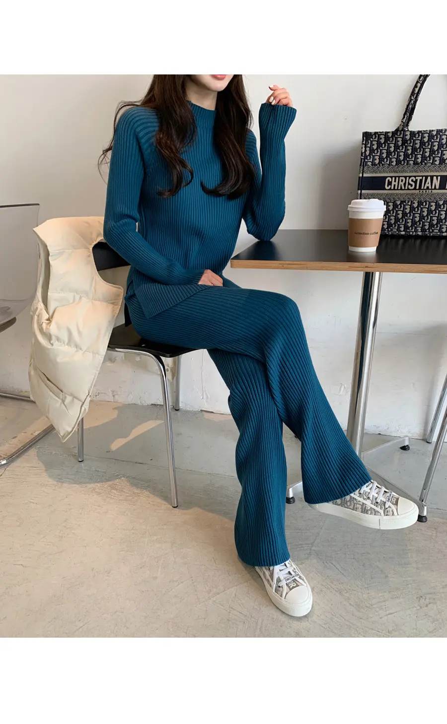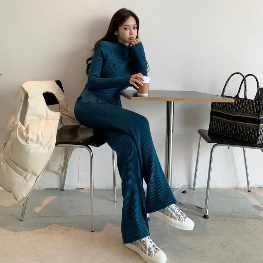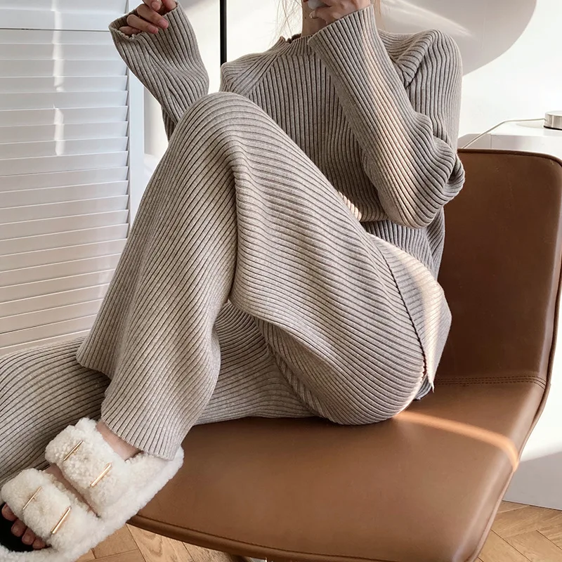 Зимний Повседневный плотный свитер, спортивный костюм, пуловер с круглым вырезом и штаны с эластичной резинкой на талии, Женский трикотажный комплект из 2 предметов