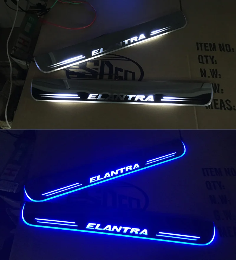 Автомобильная наклейка, акриловая движущаяся светодиодная подсветка, приветственная педаль, Накладка на порог, порог, дорожсветильник для Hyundai Elantra 2009 - 2021