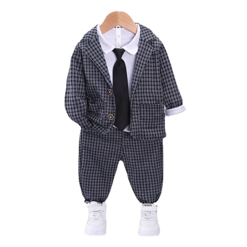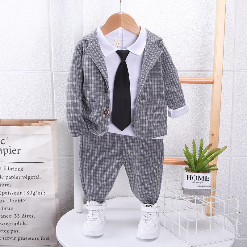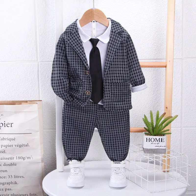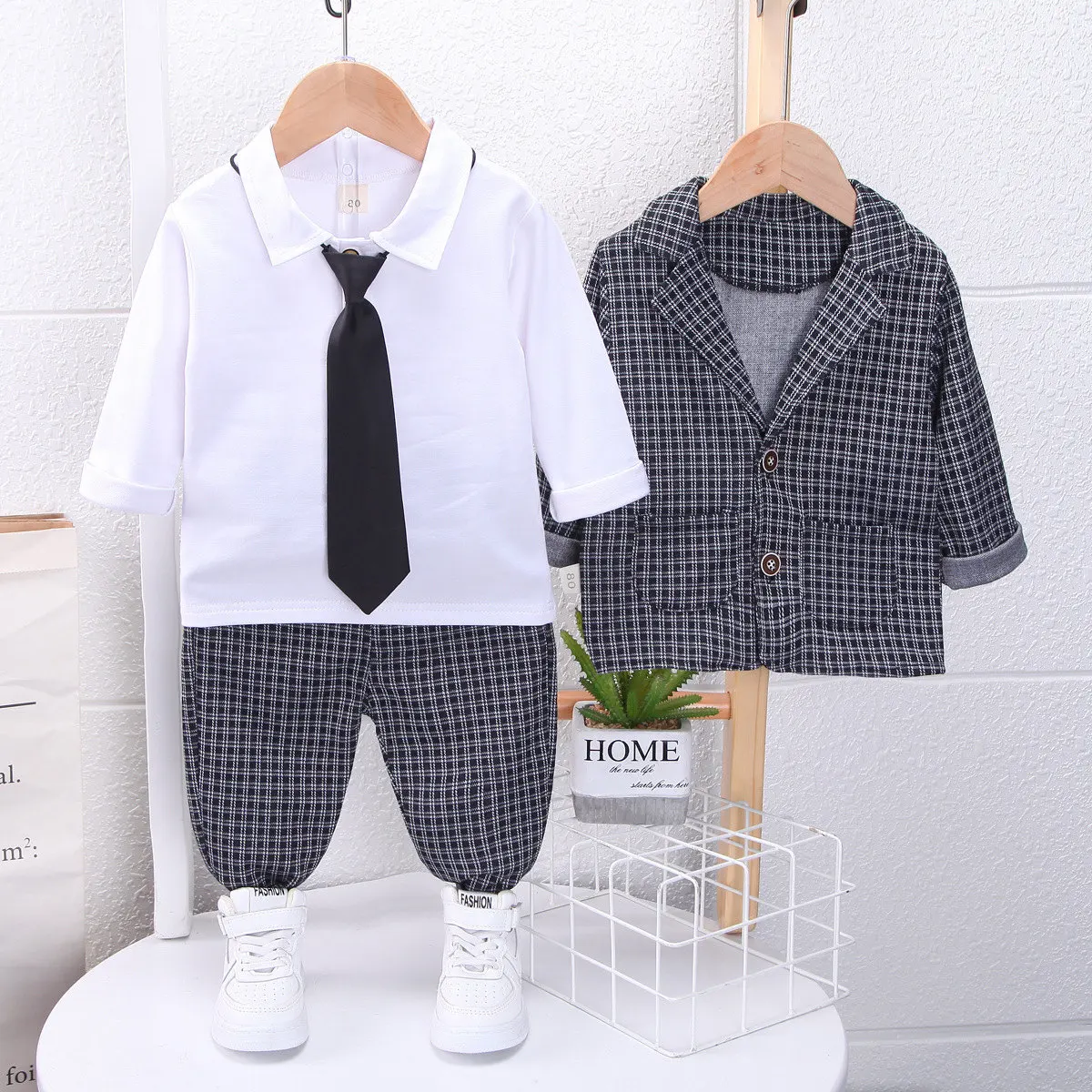 3 шт. модный красивый клетчатый Детский костюм для мальчика свадебная одежда хлопковая формальная детская одежда наборы вечервечерние одежда