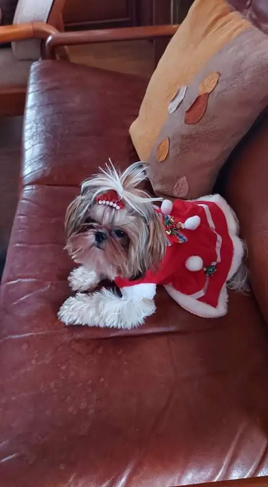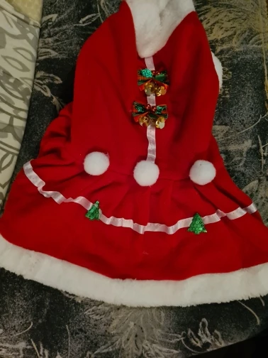 El vestido es bonito,original y está bien confeccionado,la tela es resistente y calida.Mi perrita esta comoda con él,le compré la L y le va perfecta,las medidas de mi perra son: longitud 30,cuello 23 y pecho 39 es una Yorkshire.Recomendable 100%.