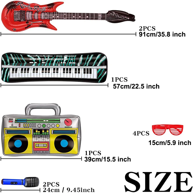 Набор надувных игрушек в виде рок-звезд, 10 шт., реквизит для гитары, пианино, тематические украшения для концерта и вечерние 80-х, сувениры случайного цвета