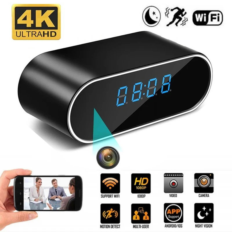 Беспроводная мини-видеокамера, 4K, Wi-Fi, часы, будильник, ночное в...
