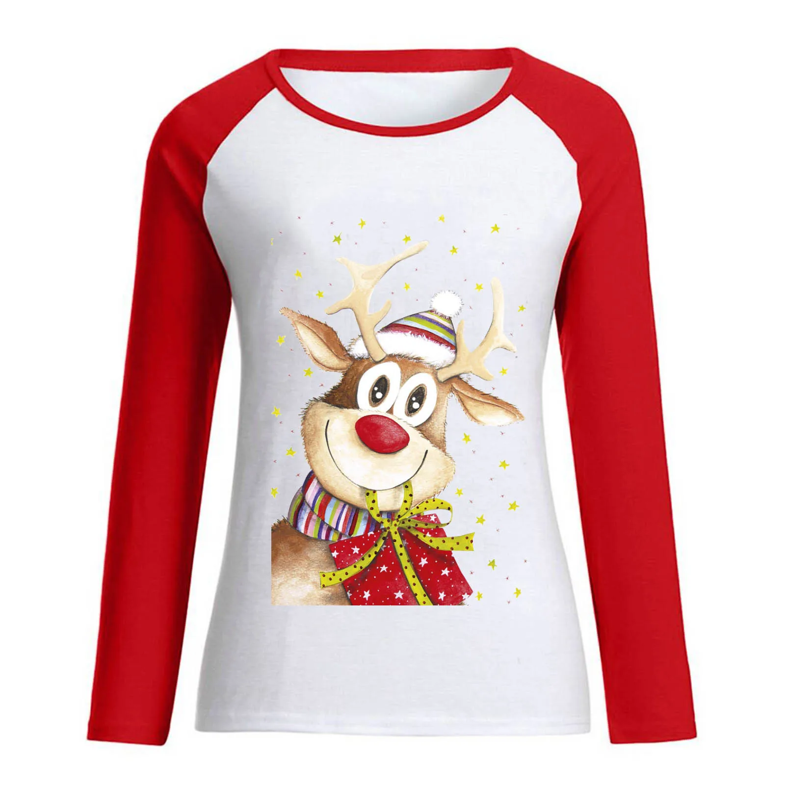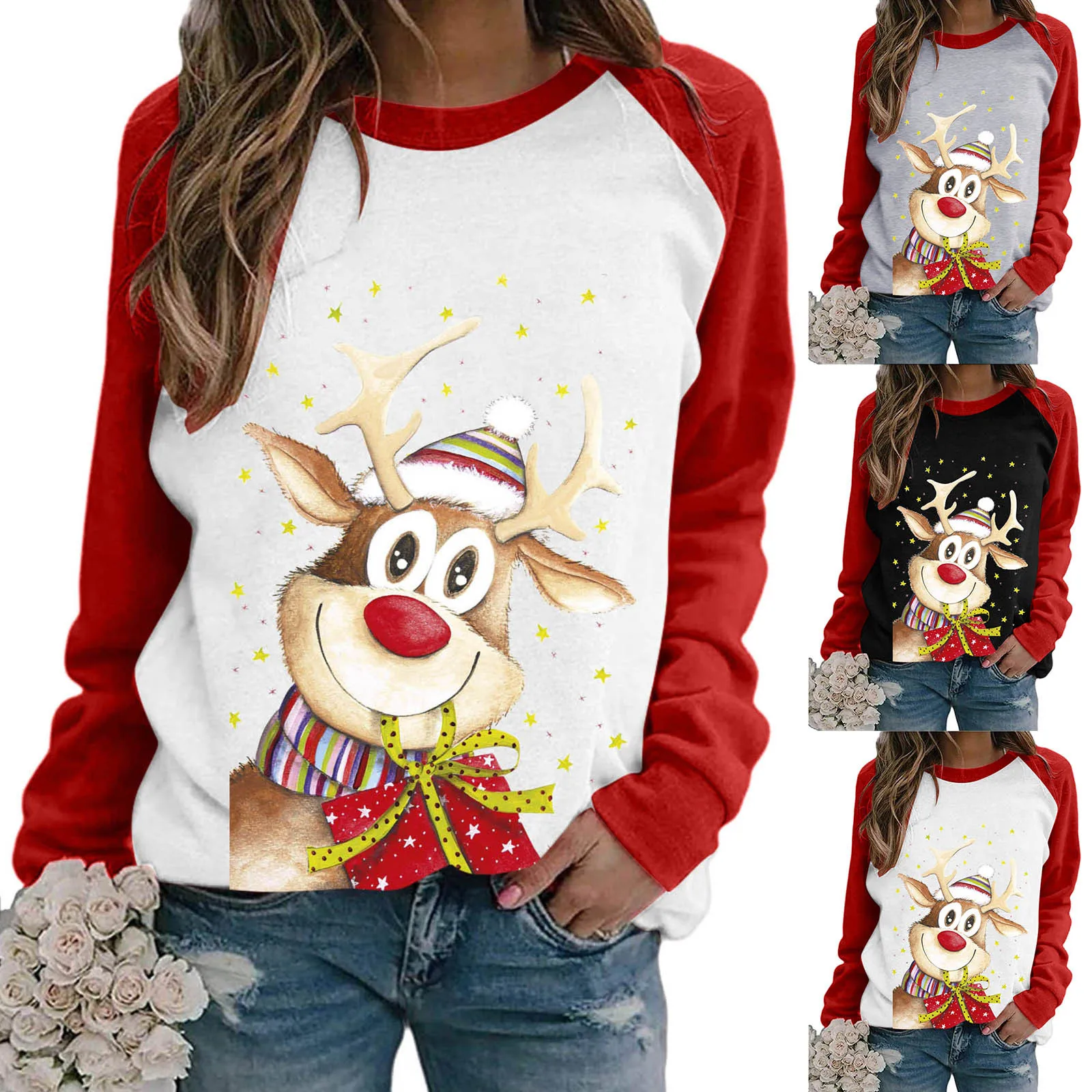 Осень 2021, свитера с рождественским принтом, повседневные пуловеры, тонкий топ с круглым вырезом и длинным рукавом, уличная одежда, женская одежда