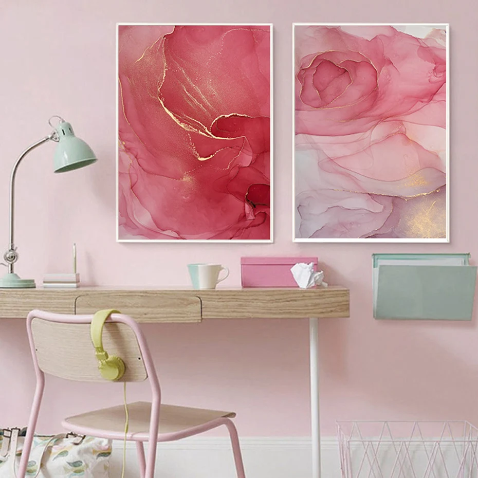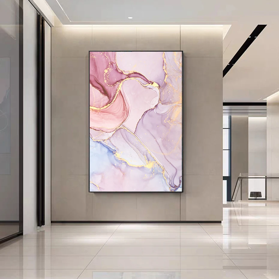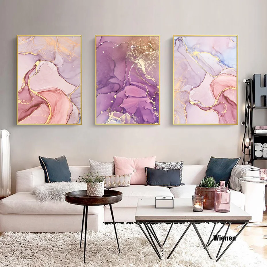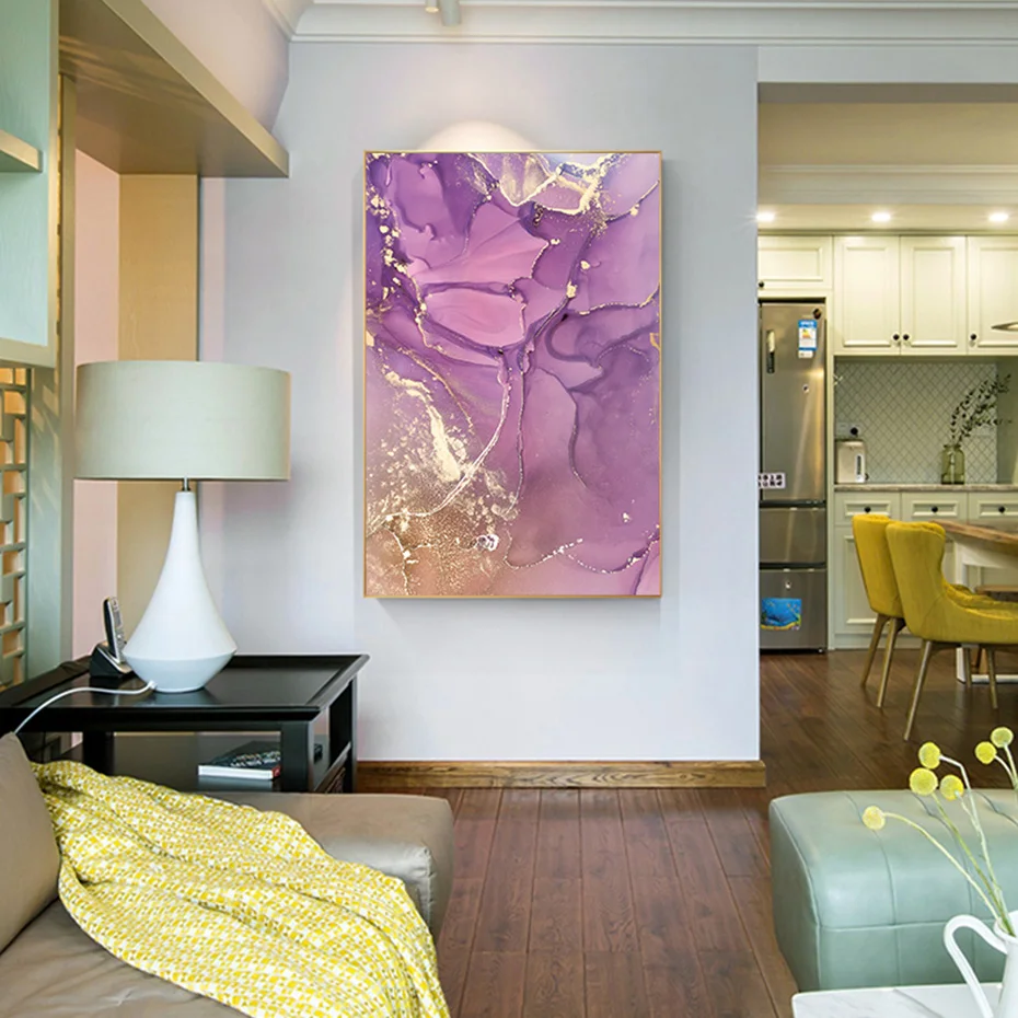 Современные абстрактные розовые фиолетовые золотые картины на холсте, настенные художественные принты, легкие Роскошные картины, большая декоративная постерная картина для гостиной