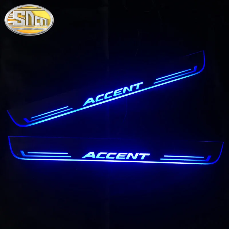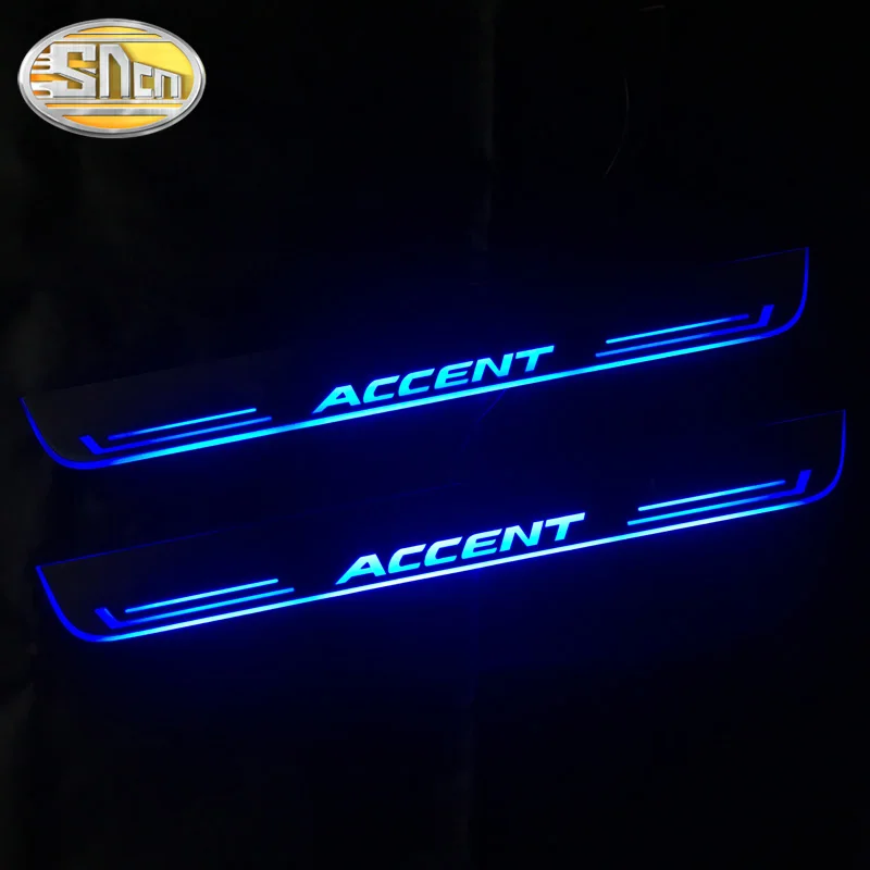 Автомобильная наклейка, акриловая движущаяся светодиодная подсветка на педаль, Накладка на порог, просветильник для Hyundai Accent 2011 - 2021