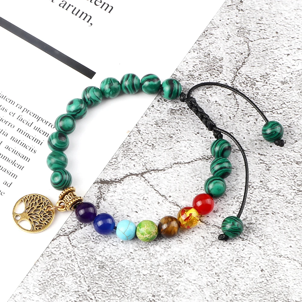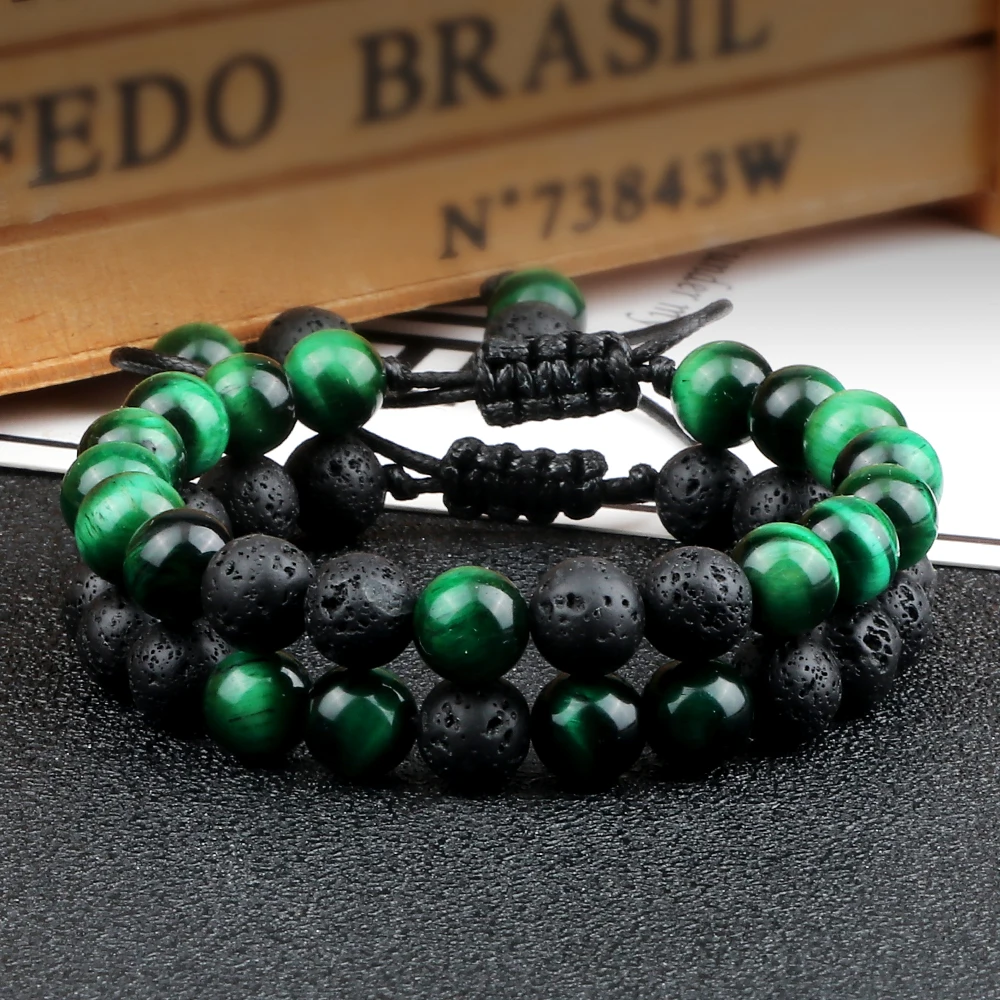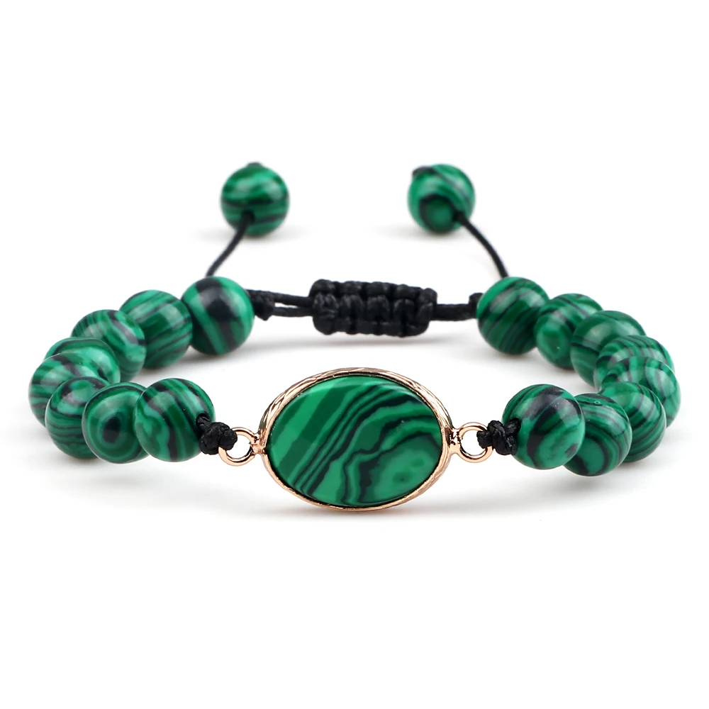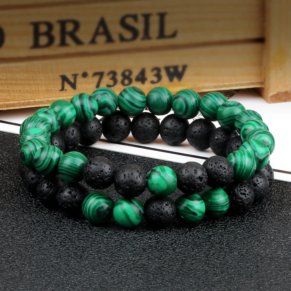 Браслеты из натурального зеленого малахита, очаровательные украшения из бисера, из лавы, из ниток, для мужчин и женщин, ювелирные изделия для йоги, подарок для молитвы, 8 мм