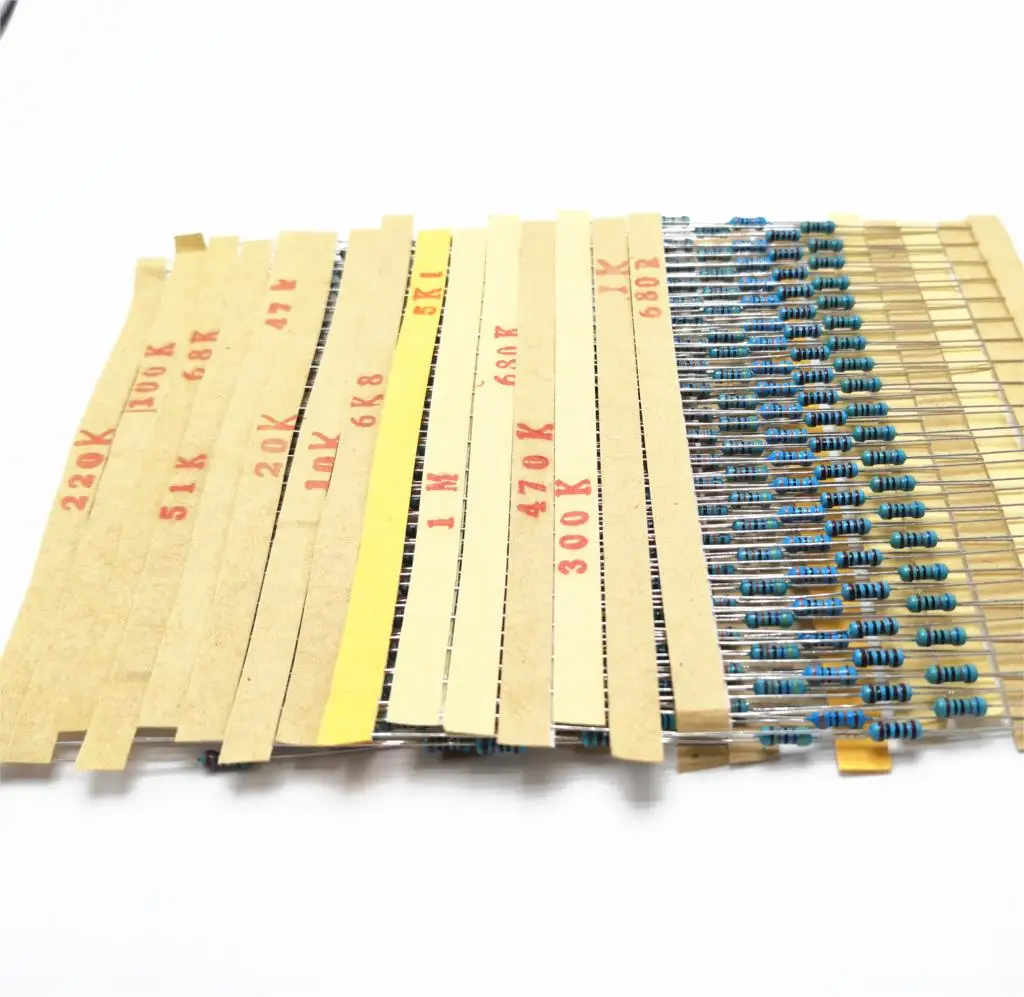 Комплект металлопленочных резисторов 14 Вт, набор 1% резисторов сделай сам, использование окрашенного кольца сопротивления (10 Ом1 МОм), 30 значений по 20 шт., 600 шт.партия