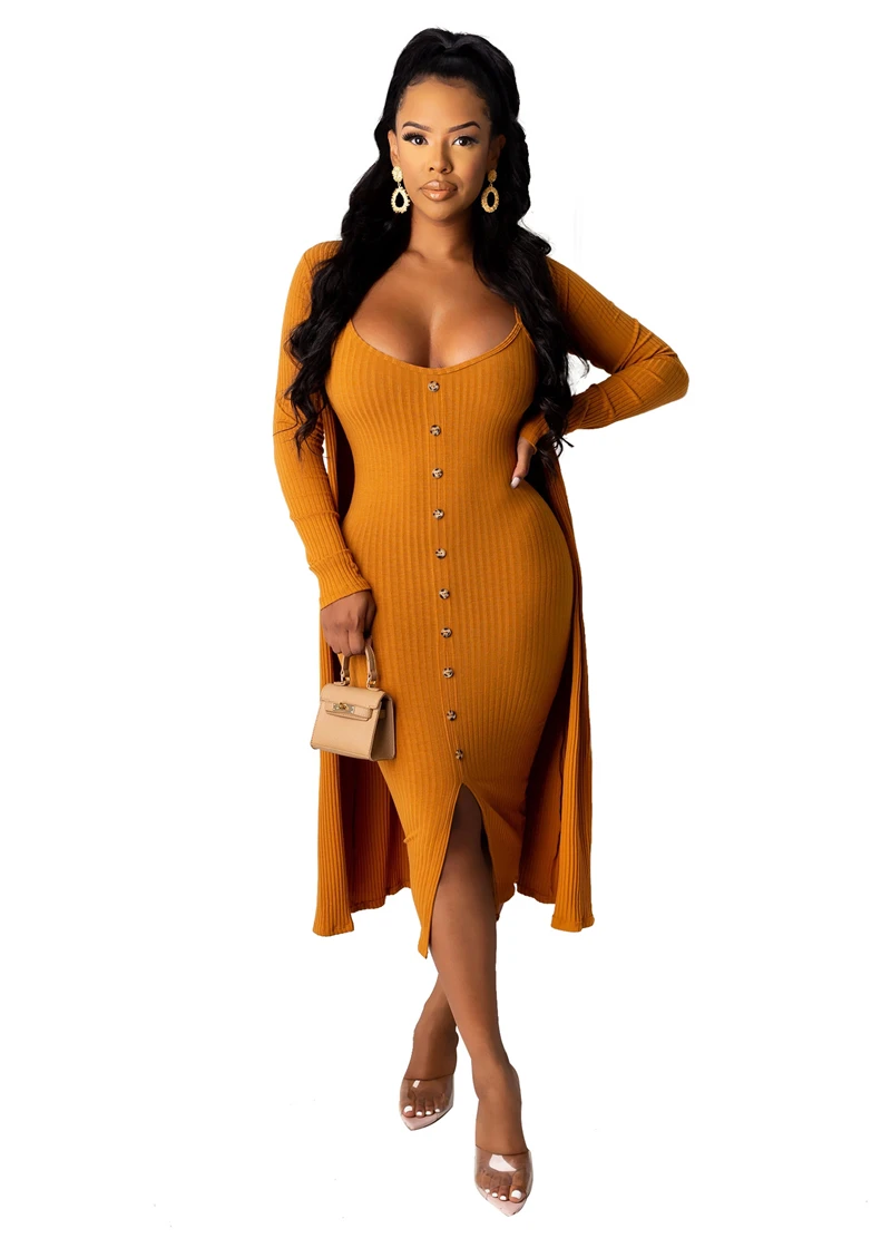 Женский трикотажный комплект из двух предметов, длинный кардиган с часами и топ без рукавов, облегающее платье миди, повседневные женские комплекты, осень