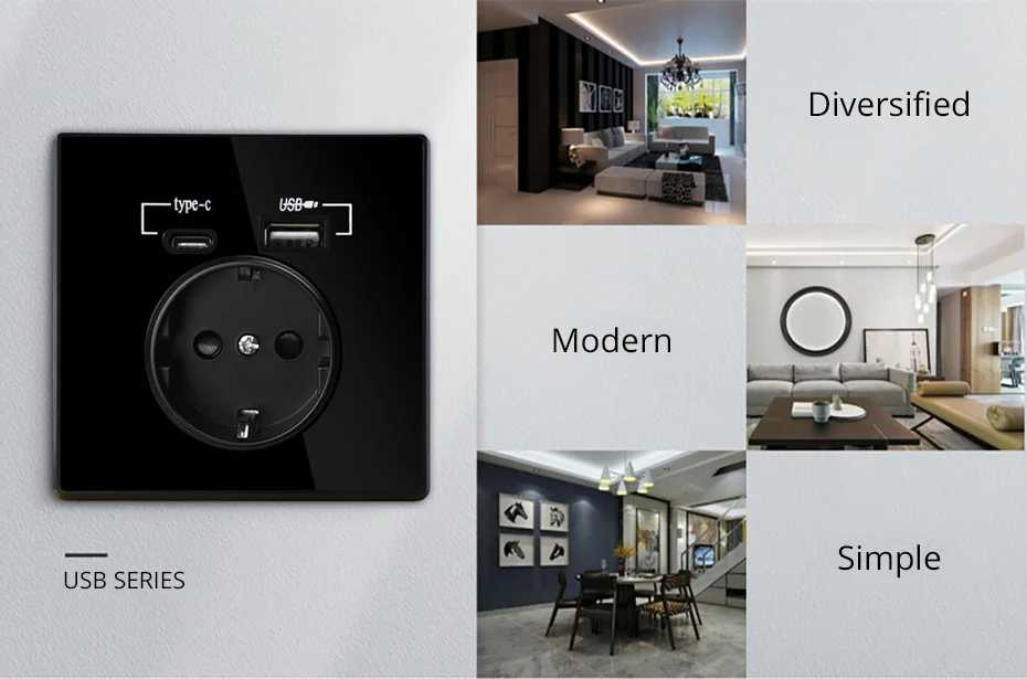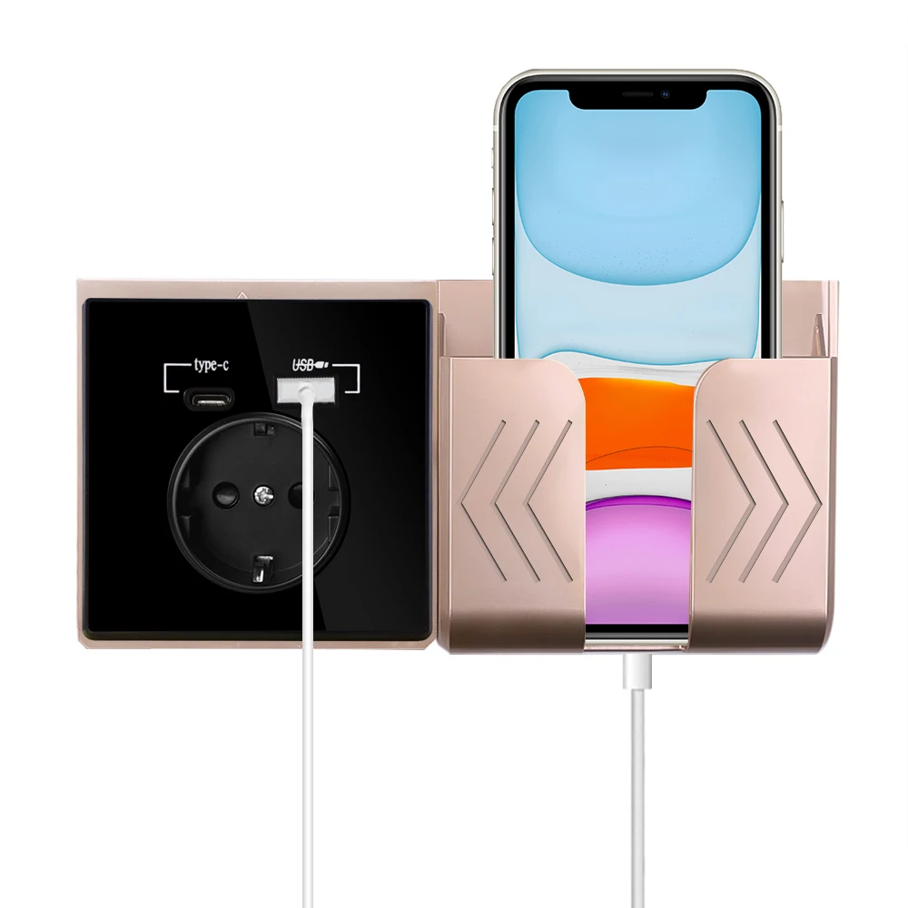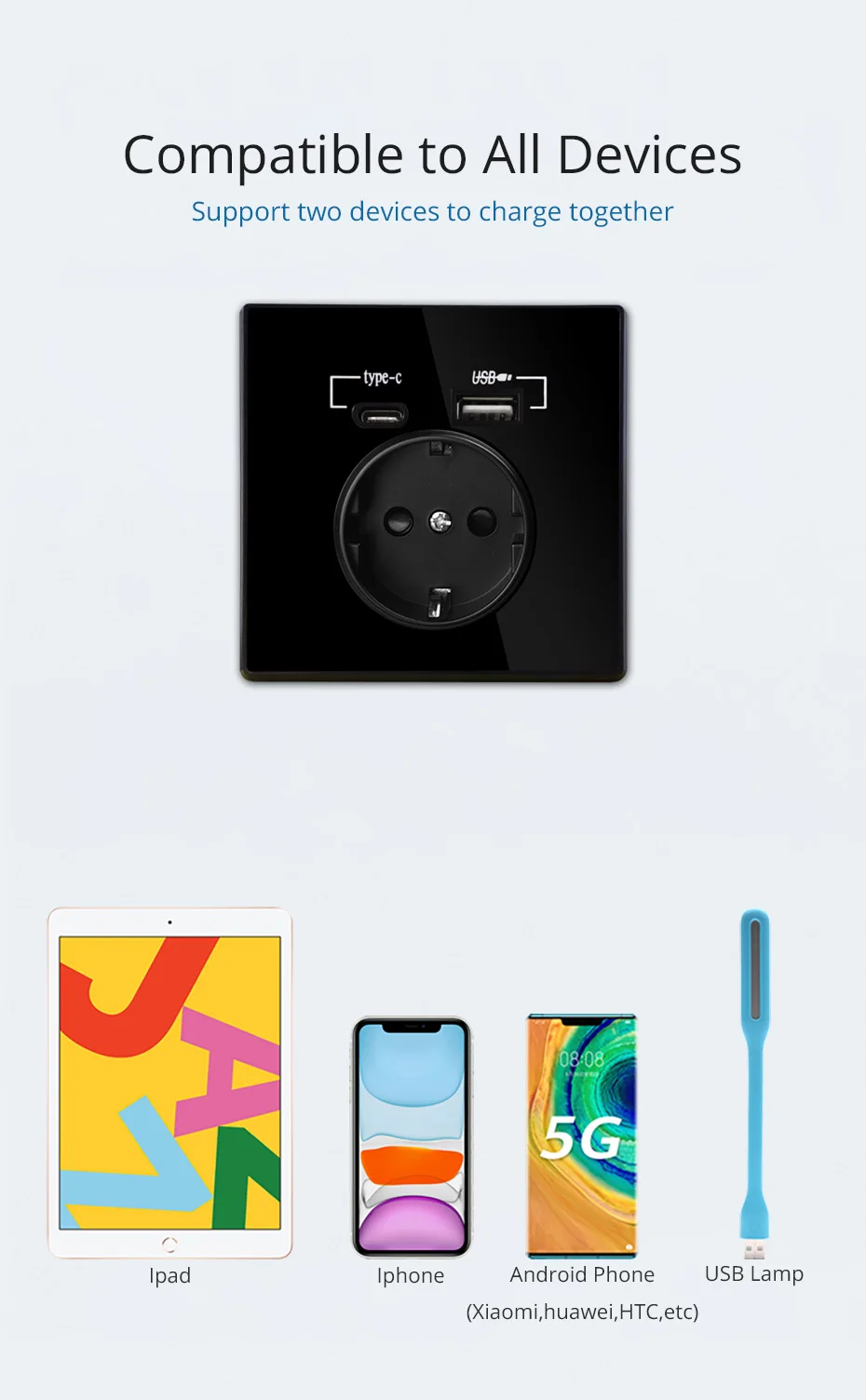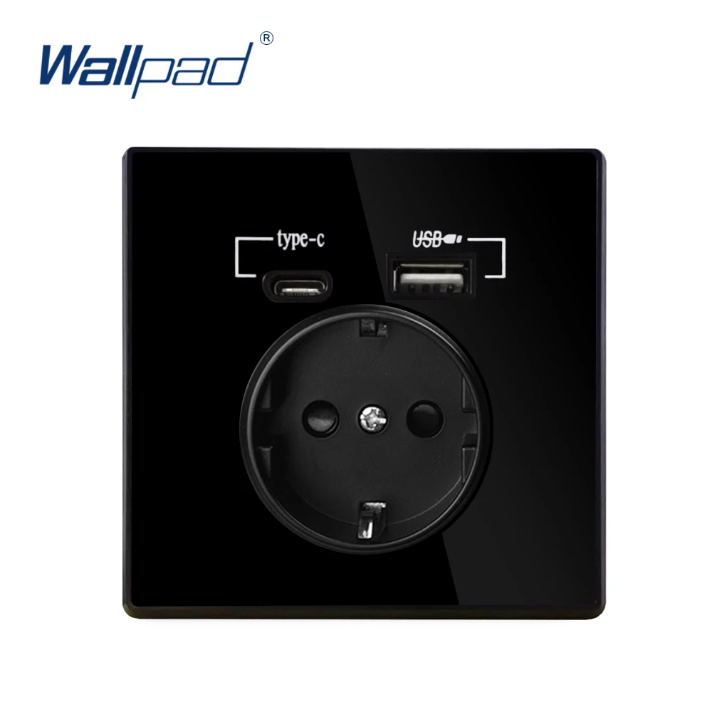 Настенное быстрое зарядное устройство с USB-портом типа C, черная акриловая панель, европейская и немецкая розетки, электрическая розетка для умного дома, 5 В, 2100 мА
