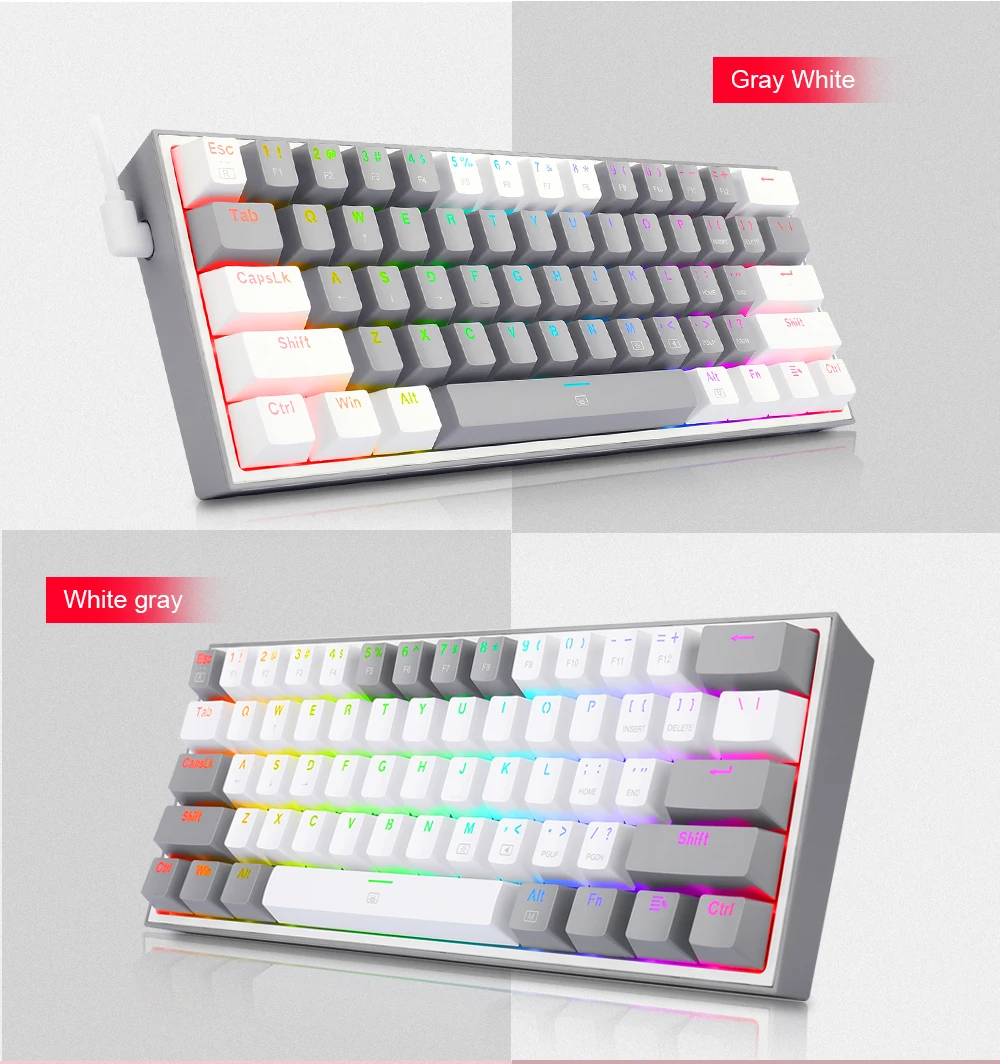 Механическая мини-клавиатура REDRAGON Fizz K617, игровая Проводная Съемная клавиатура с красным переключателем, 61 клавиша, USB, для путешествий